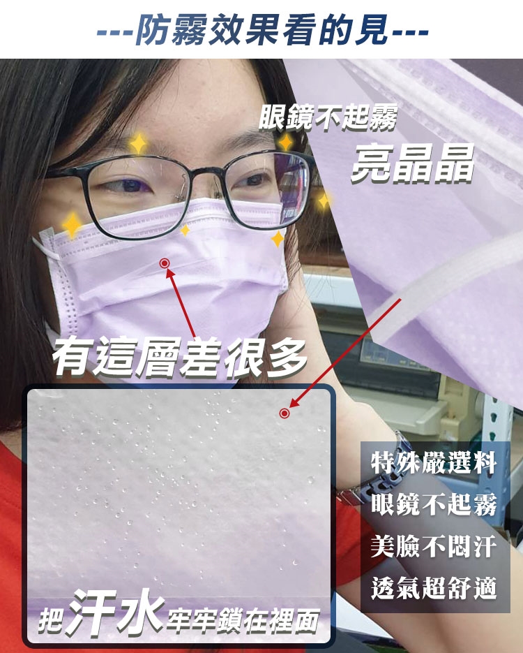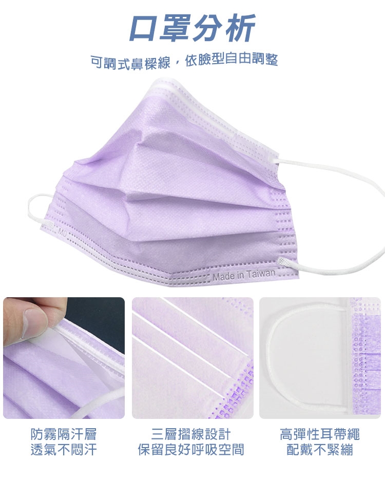品名:眼鏡防霧型醫療級三層口罩50片/盒-薰衣紫