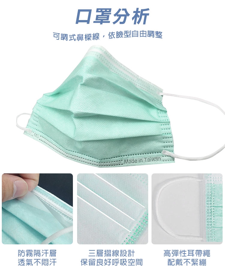 品名:眼鏡防霧型醫療級三層口罩50片/盒-薄荷綠