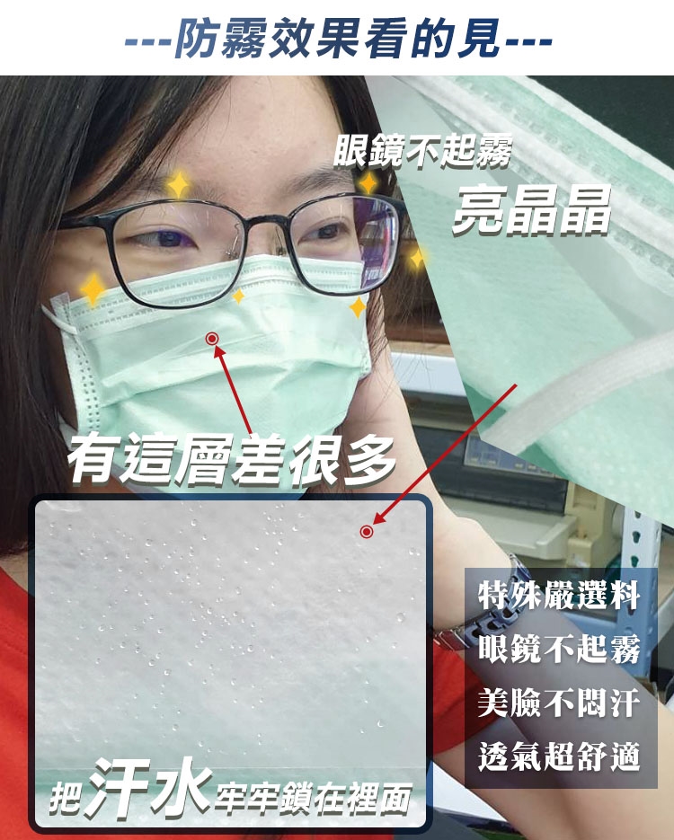 功能:眼鏡防霧、不悶汗、濾除花粉、灰塵、異味、細菌、病毒。