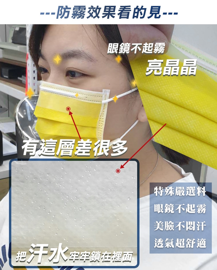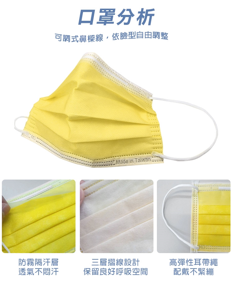 品名:眼鏡防霧型醫療級三層口罩50片/盒-絲雀黃