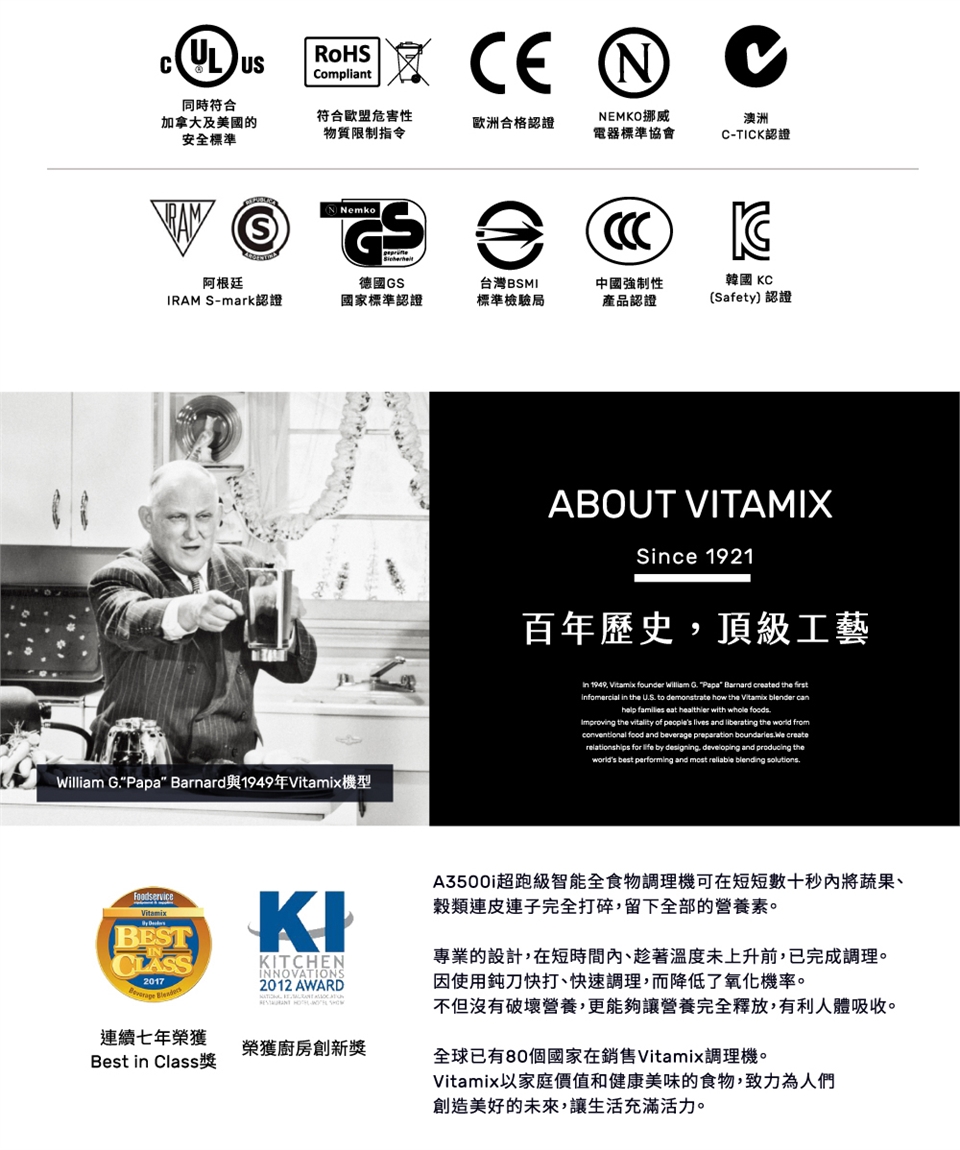 ●知名主持人、暢銷作家、養生達人─陳月卿老師,唯一指定用調理機!親身體驗,誠心推薦。 Vitamix調理機的「黃金組合」能加倍釋放細胞壁中的脂質與植化素,減少微量元素氧化,釋放更多食材美味,試過無數調理機,只有Vitamix能帶來這種無與倫比的綿密絲滑口感,釋放最完整的營養素。