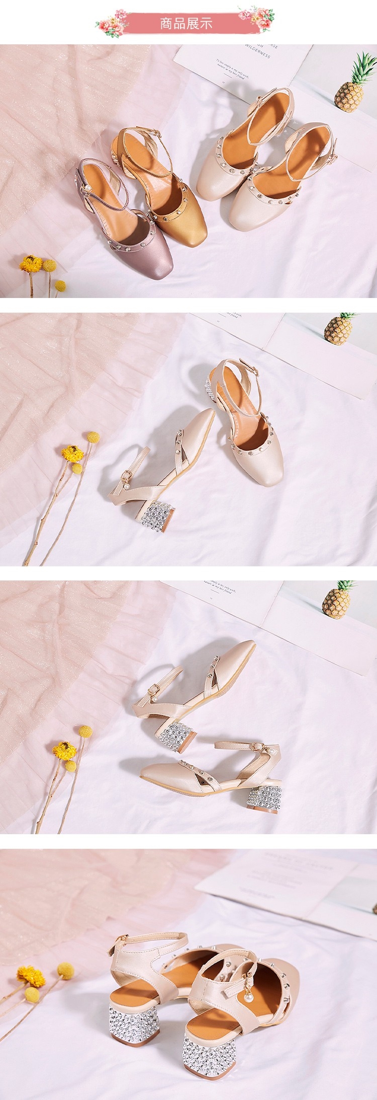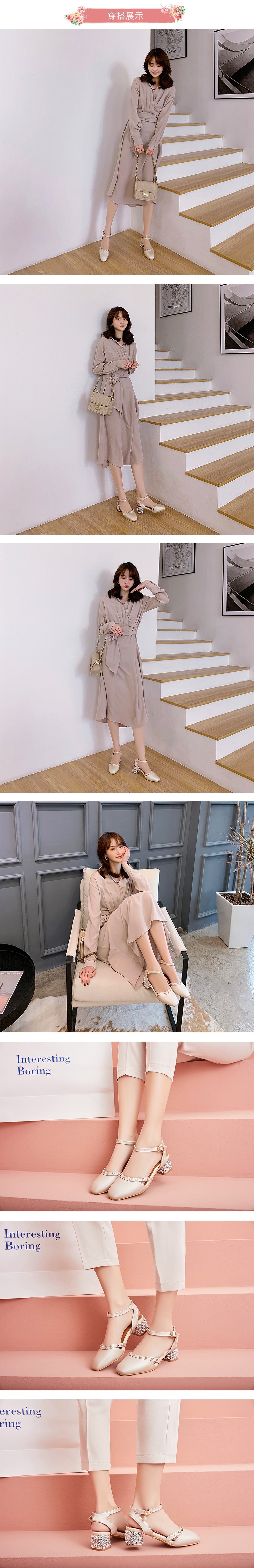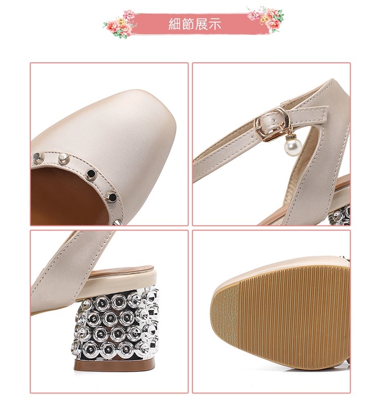 【Kissxxx】鉚釘涼鞋粗跟涼鞋/珠光亮皮小方頭鉚釘造型繫帶粗跟涼鞋 杏