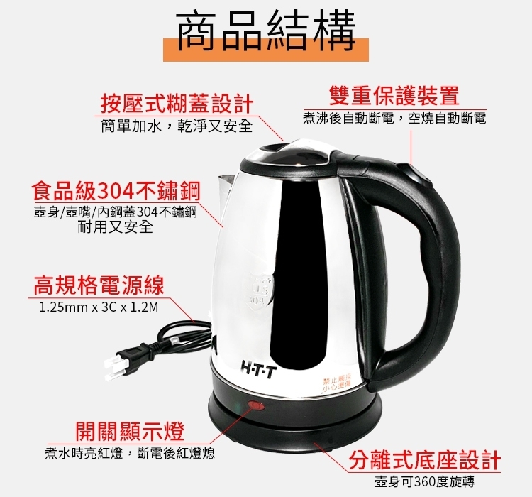 雙重保護裝置-煮沸後自動斷電,空燒自動斷電