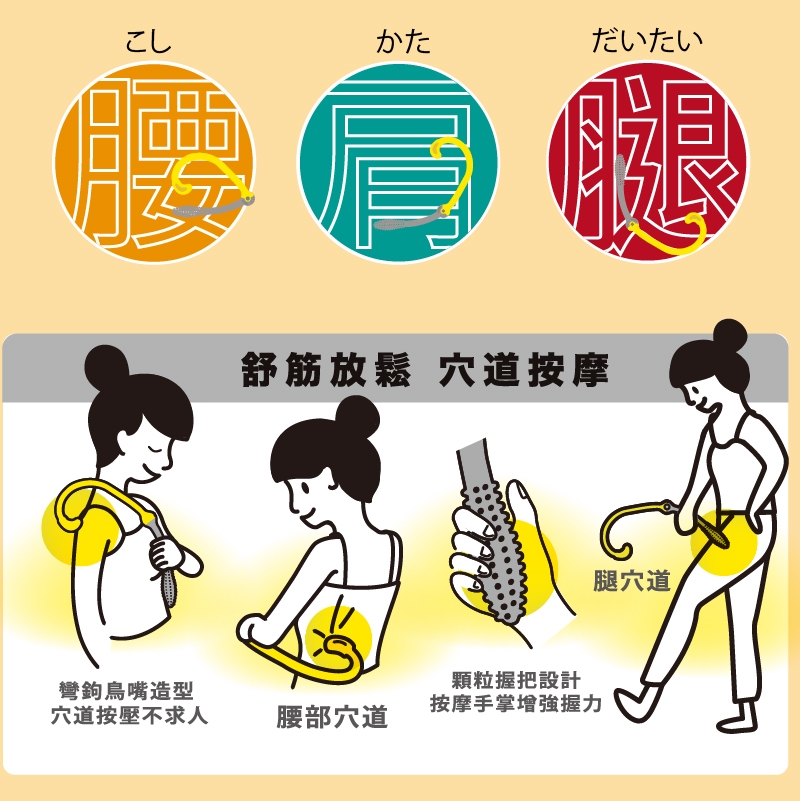 ˙彎鉤鳥嘴造型 穴道按壓不求人