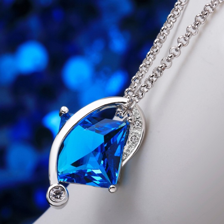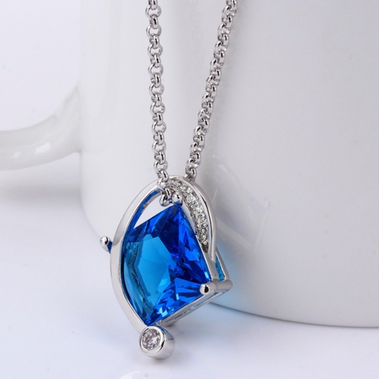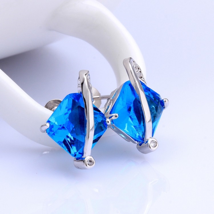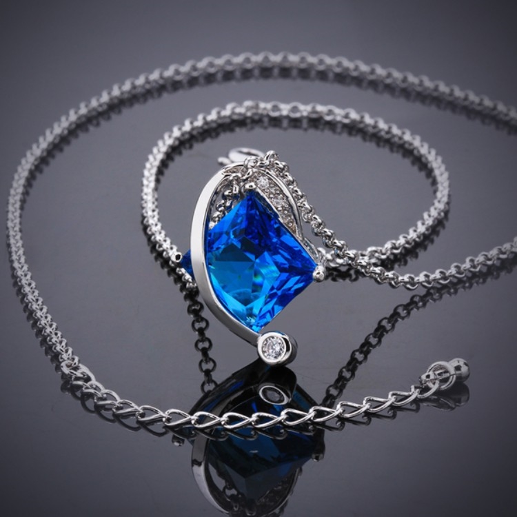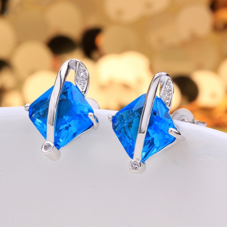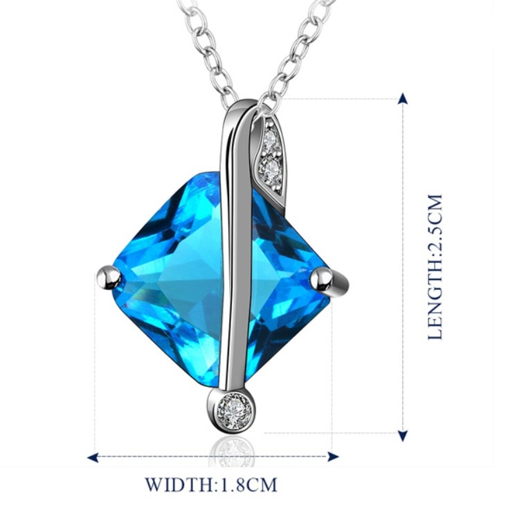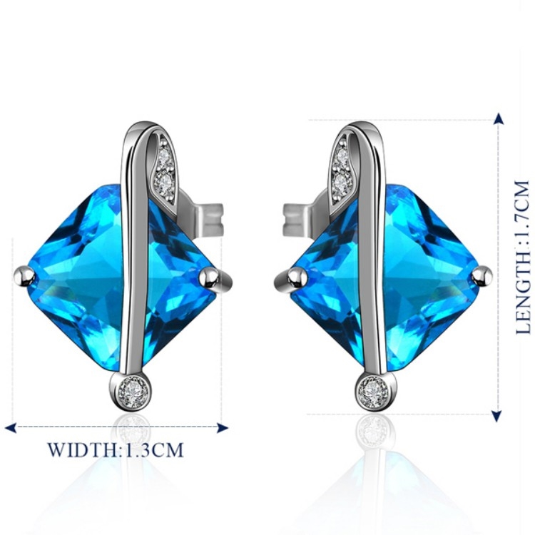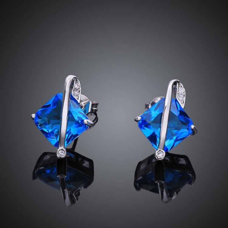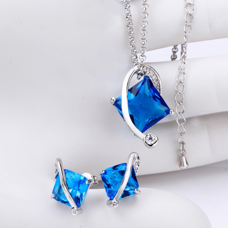 【Aphrodite 愛芙晶鑽】直線美鑽方塊藍寶石造型項鍊耳環套組(白金色)