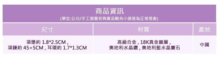 ◆合金飾品一經使用可能隨時間失去光澤或褪色,此為正常物理現象,妥善使用保存可延長飾品壽命。