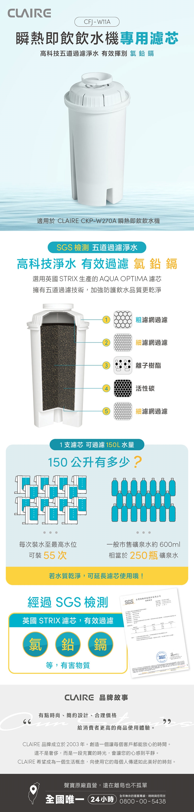 ◆一支濾芯可過濾150L水量=水箱裝至最高水位55次=250瓶礦泉水。