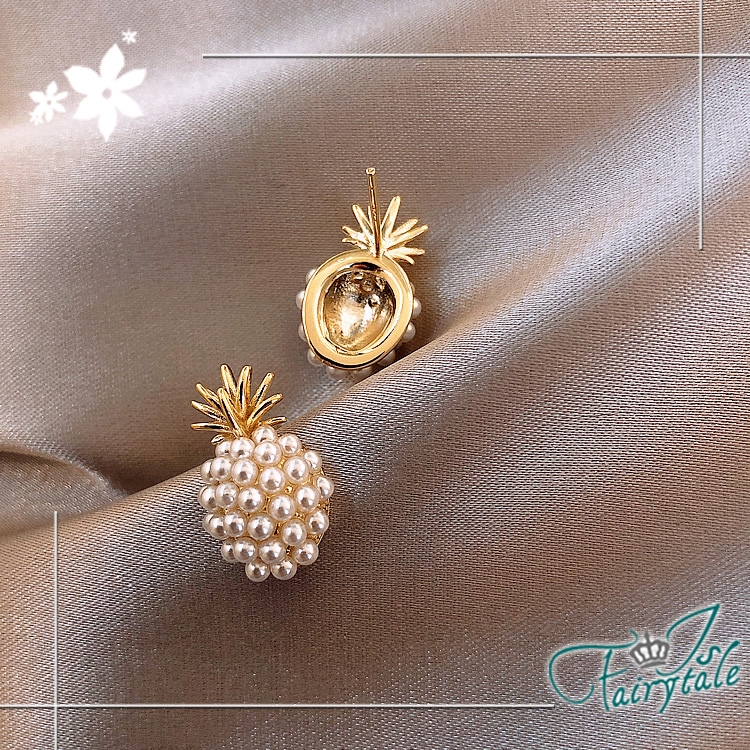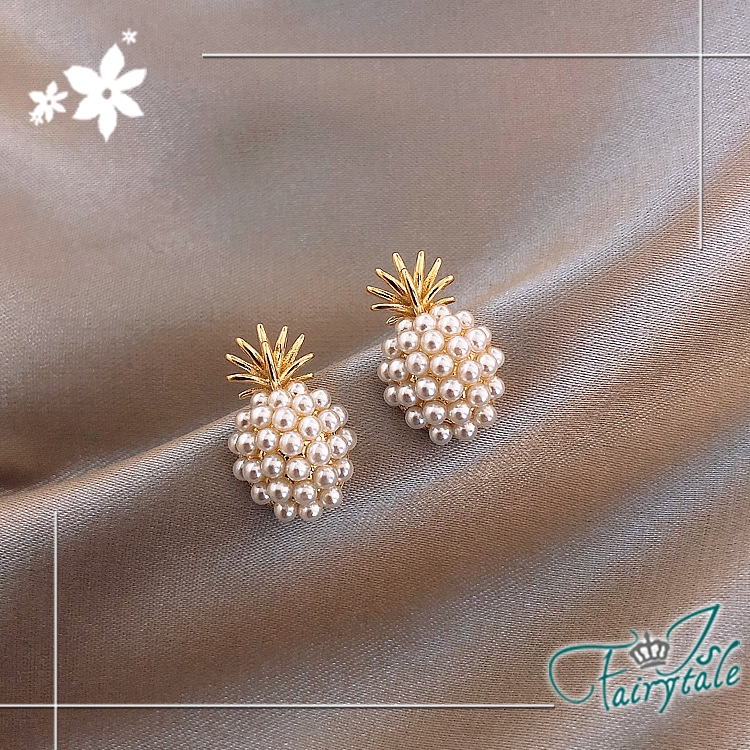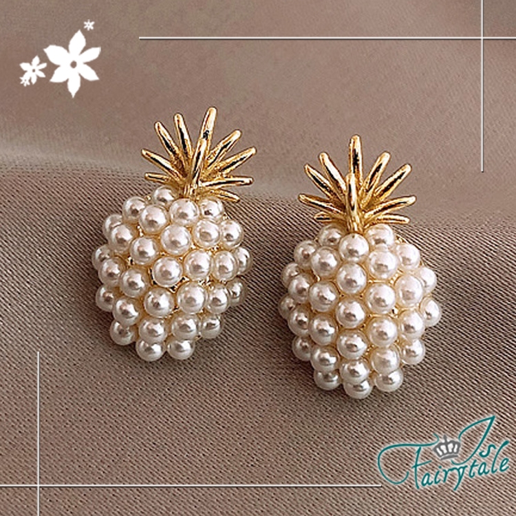 典雅韓風鳳梨珍珠造型款式,925銀針低過敏性,迷人小巧典雅時尚,