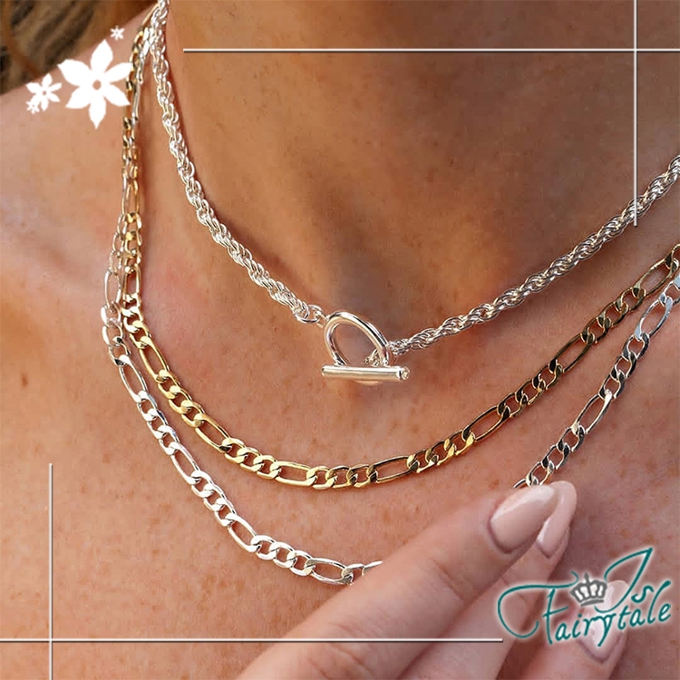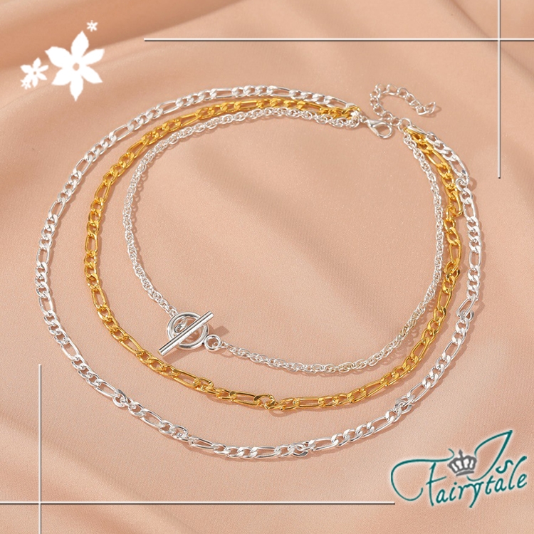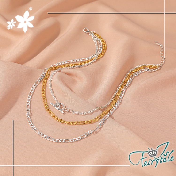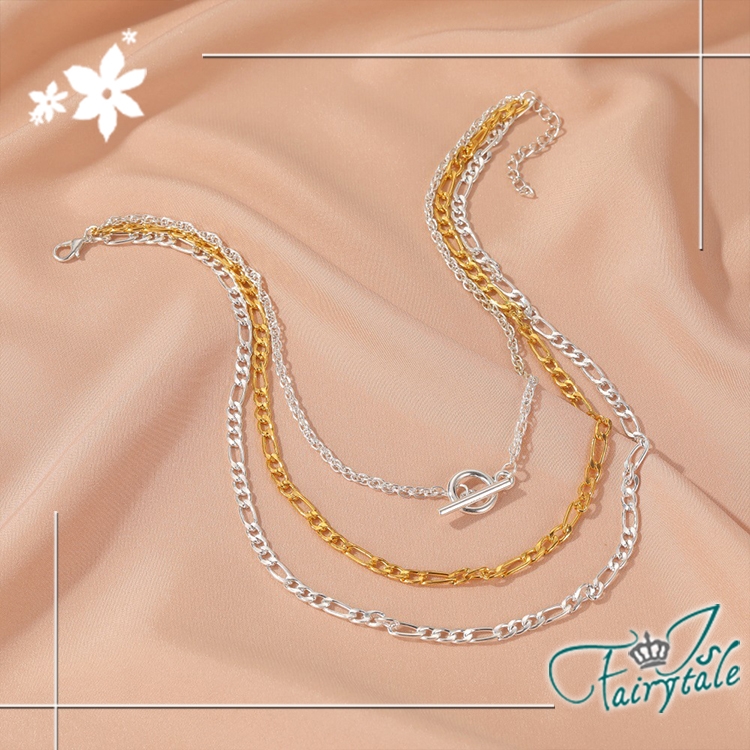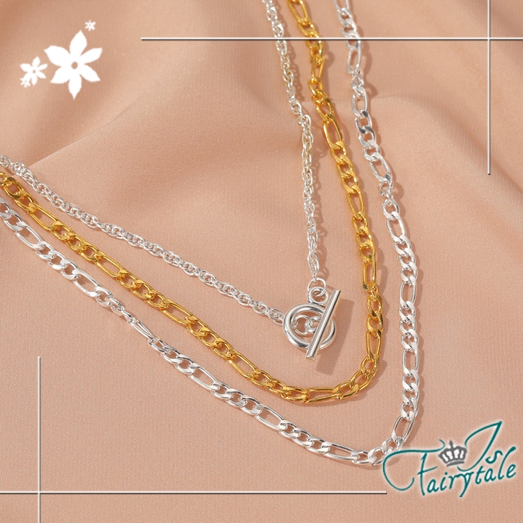 簡約個性一字扣三層項鍊,歐美風格華麗搶眼,