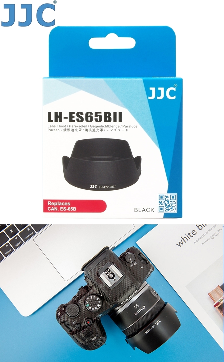 ●【品名】JJC副廠Canon遮光罩LH-ES65BII(蓮花型;相容佳能原廠ES-65B遮光罩)適RF 50mm f1.8 STM
