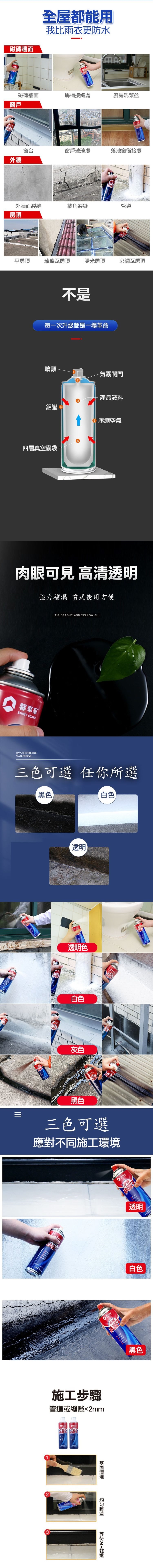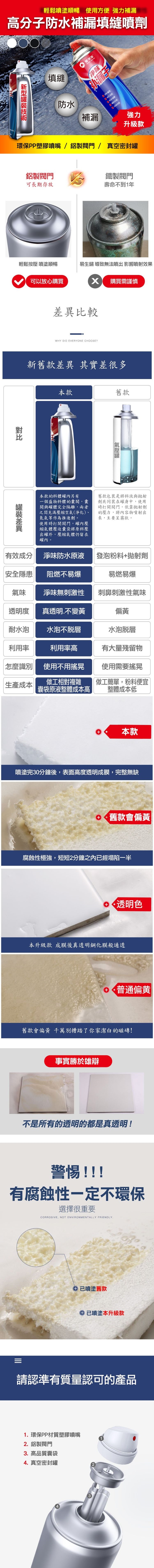 全新升級款 高分子防水補漏填縫噴劑,共有三款色可選擇,搞定家中屋頂、管根、器具、牆壁漏水等問題,可快速大面積噴灑,噴霧距離長,讓你作業更輕鬆,高溫不液化,低溫不脆化,超強防漏 耐冷熱、居家必備物品