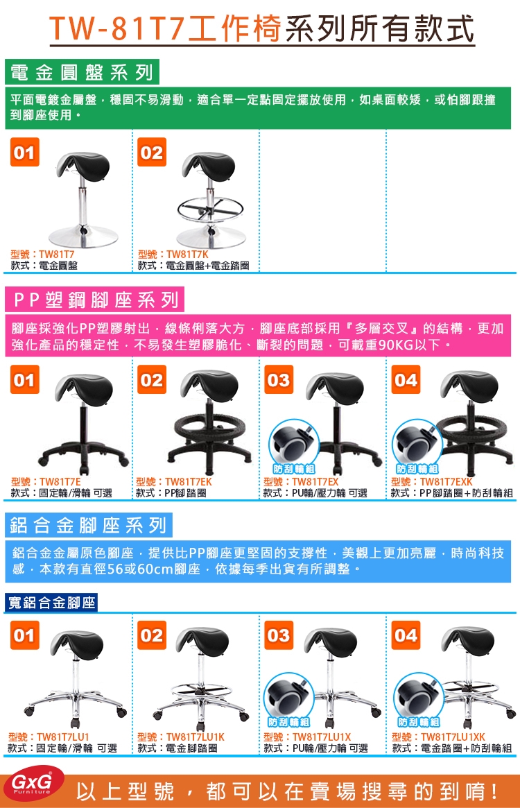 ※本款TW-81T7 馬鞍工作椅,提供多種款式可選,可以依據需求購買