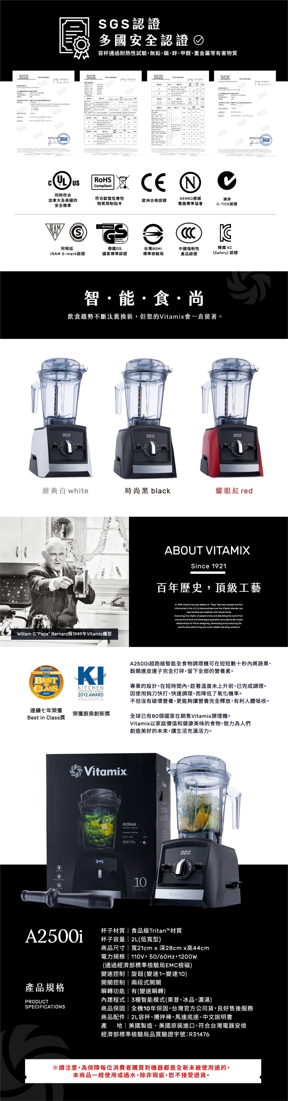 美國百年品牌Vitamix Ascent領航者A2500i─全新智能超跑級調理機震撼登台!