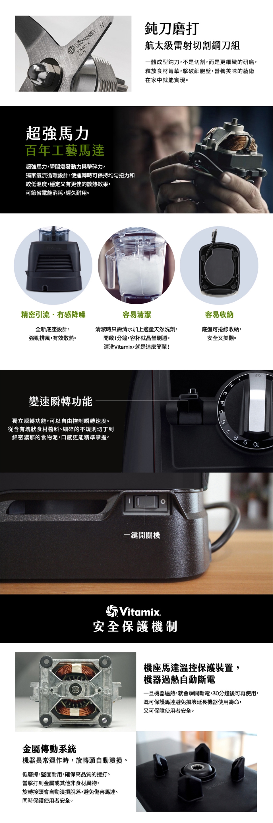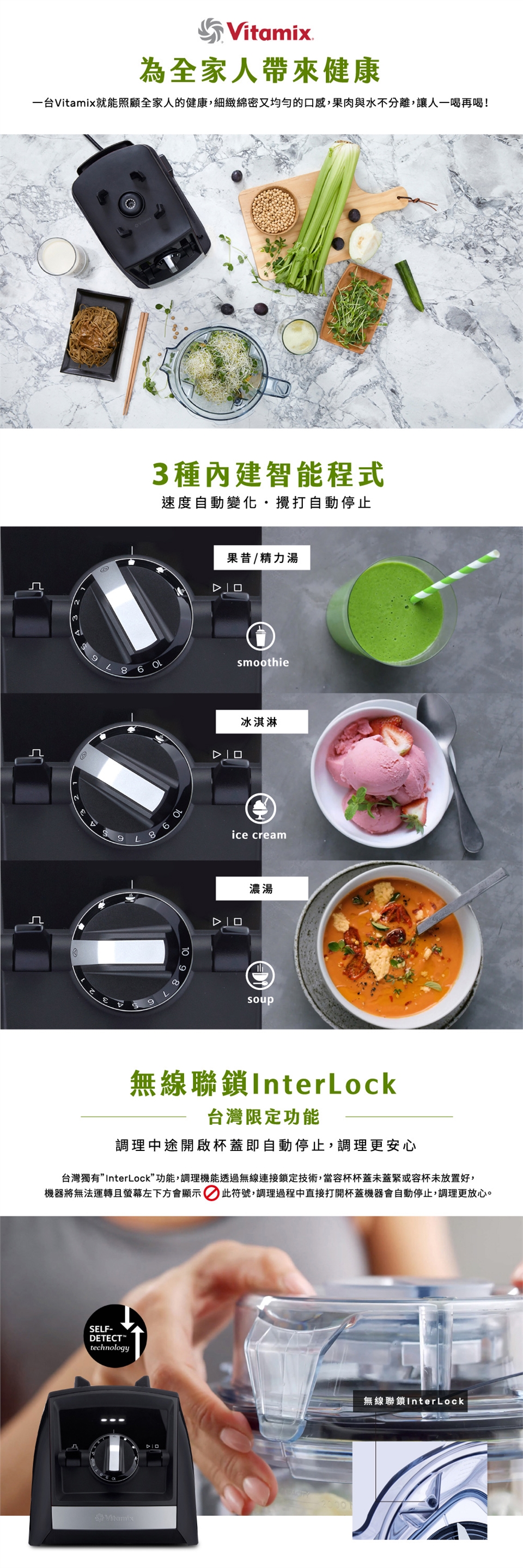 ●Vitamix延續經典再進化!並增設3項智能調理程式─果昔、冰品、濃湯,自動計時調理,攪打完成自動停止,不必看顧。