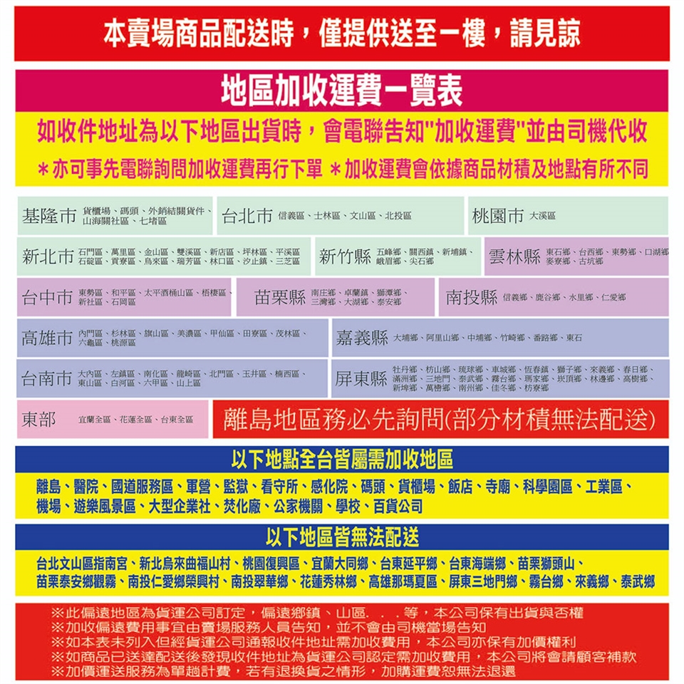偏遠地區需加收運費