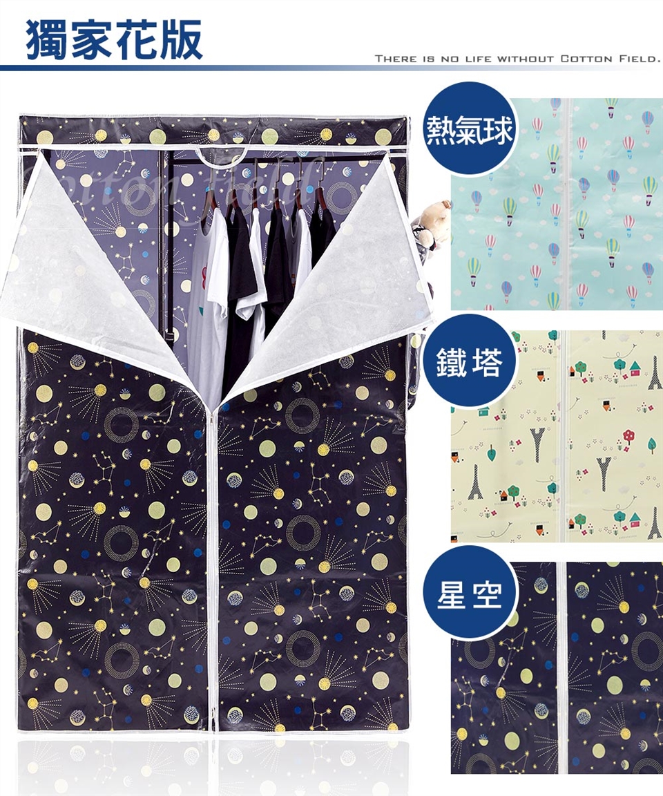 棉花田【繽紛】PP覆膜防水防塵衣櫥布套(122x46x180cm)