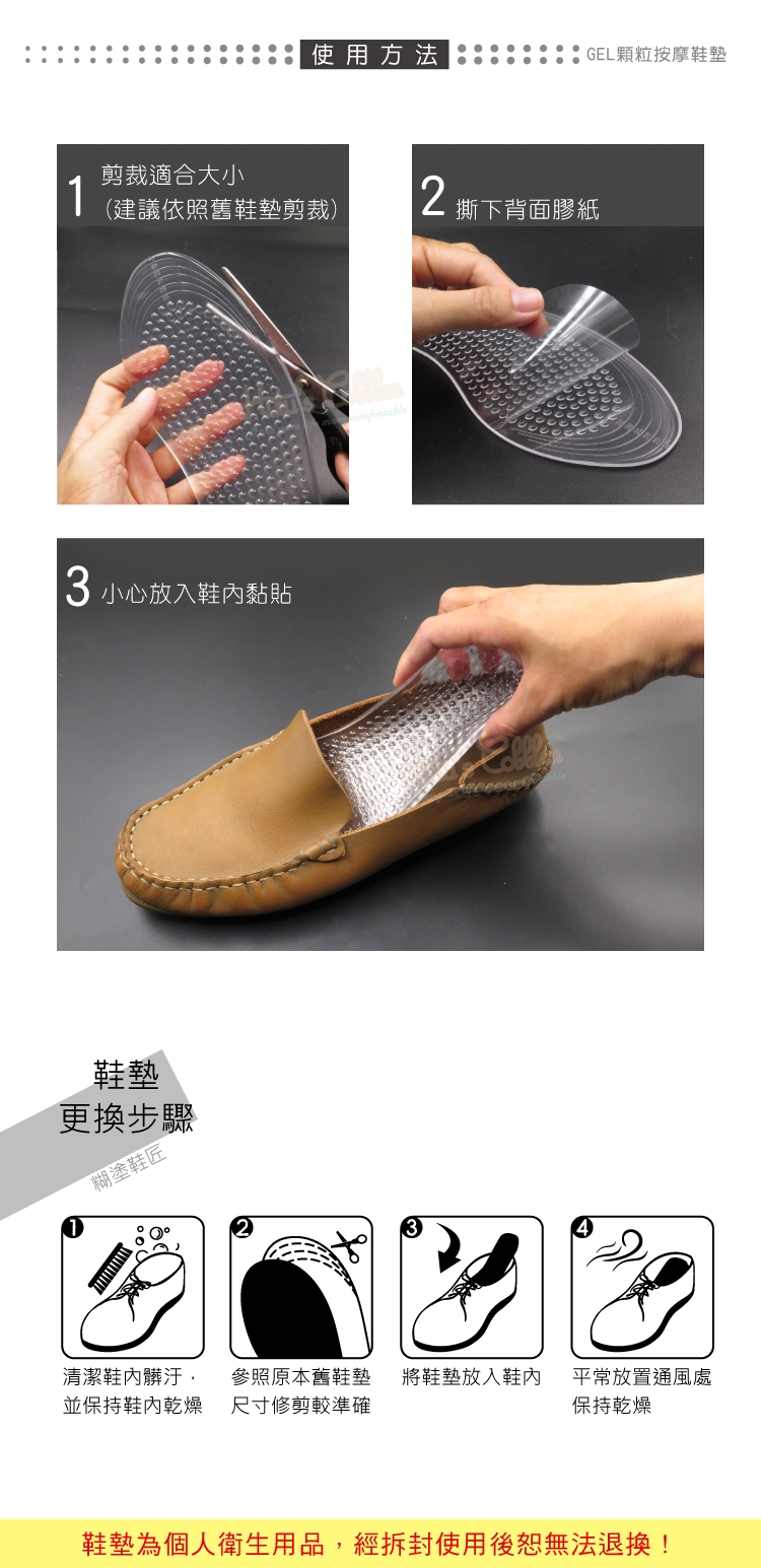 1.剪裁適合大小(建議依照舊鞋墊剪裁)