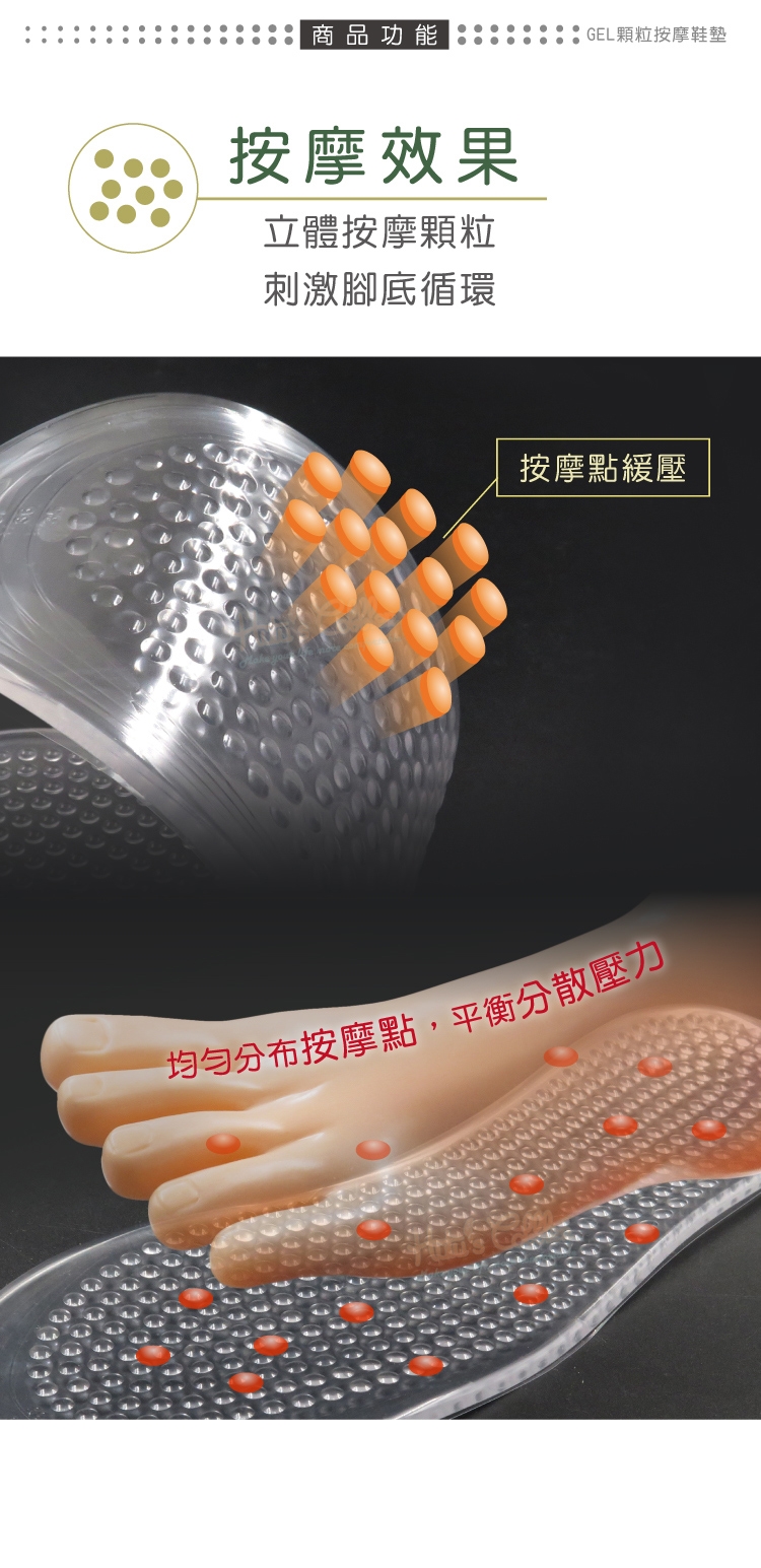 按摩效果:立體按摩顆粒,刺激腳底循環
