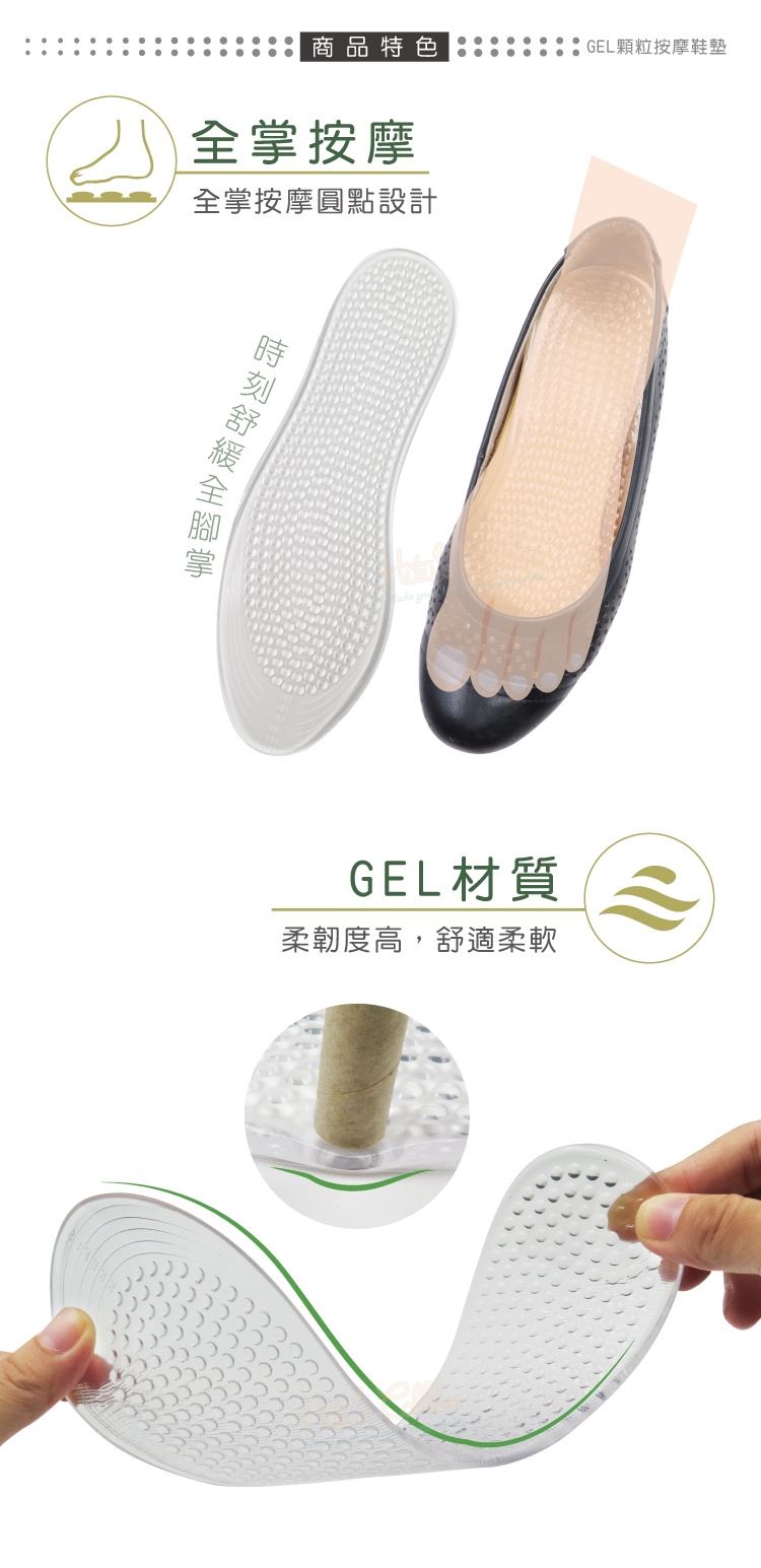 全掌按摩:全掌按摩圓點設計,時刻舒緩全腳掌