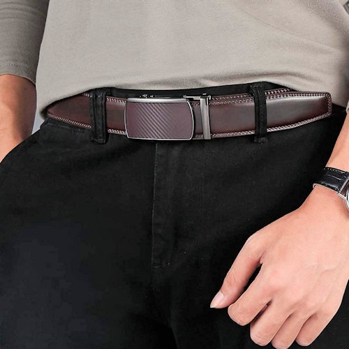 【Love 21 】Lingli 2021男時尚無皮帶孔休閒壓紋黑色皮帶