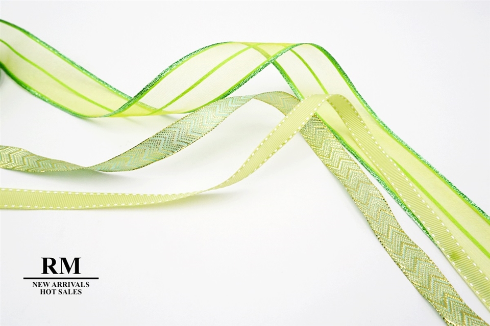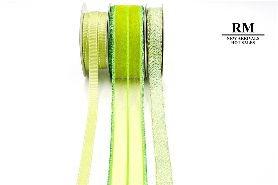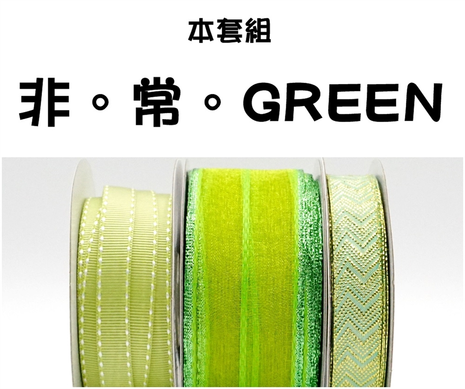 本套組由多種不同款式的青蘋果綠色緞帶組合而成 。