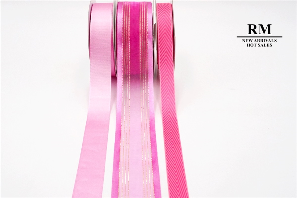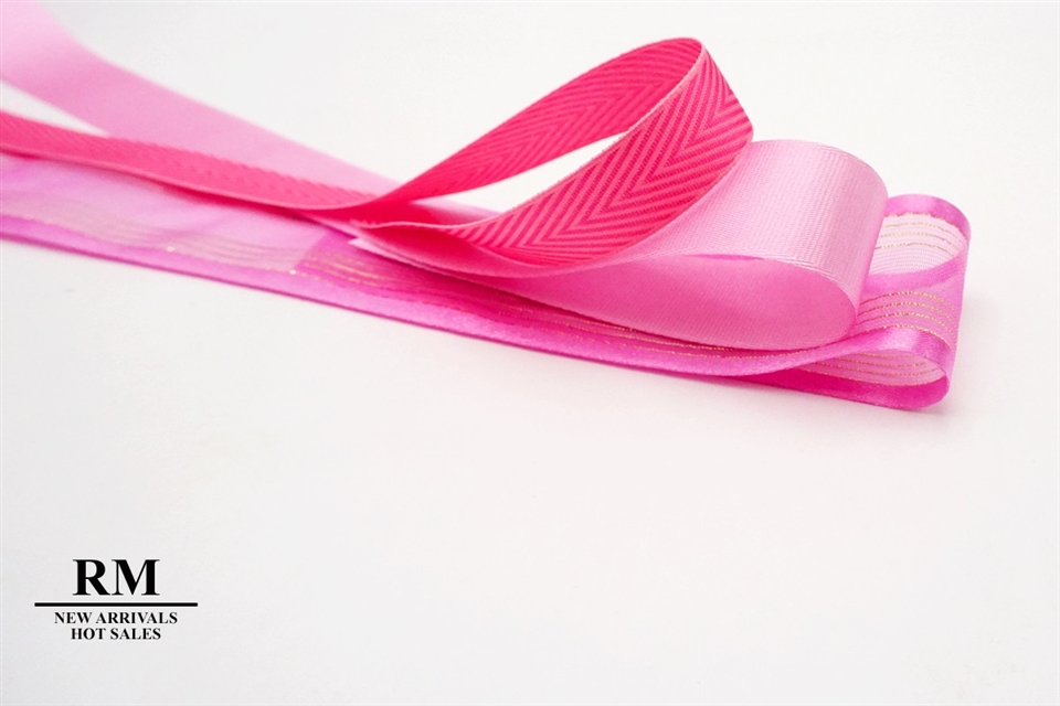 本套組由多種不同款式的粉色與桃紅色雪紗緞帶組合而成。