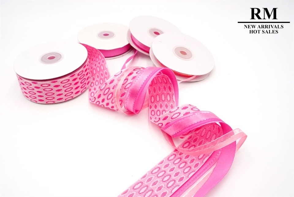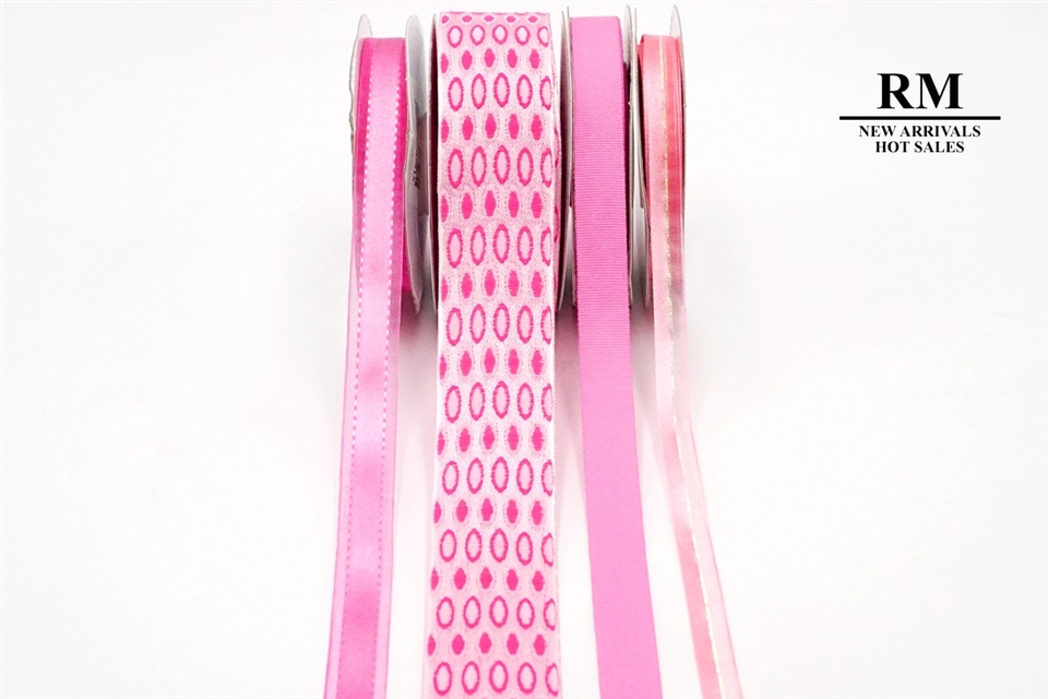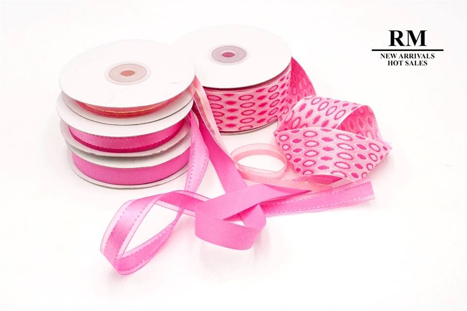 本套組由多種不同款式的桃紅色緞帶組合而成。