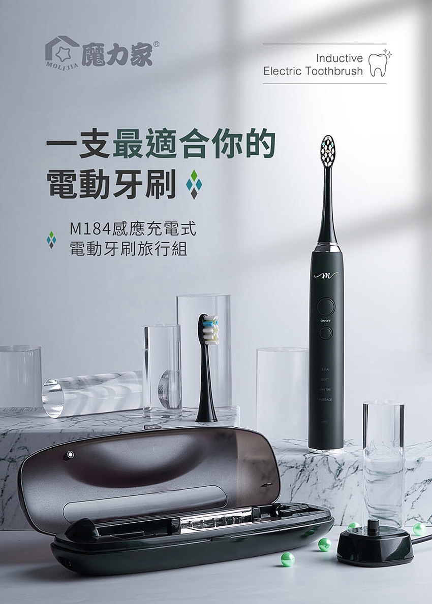 產品名稱:【MOLIJIA 魔力家】M184感應充電式電動牙刷旅行組