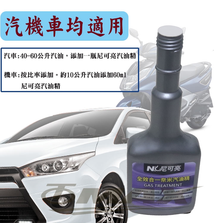 機車 : 按比率添加。每10公升汽油添加約60ml的汽油精