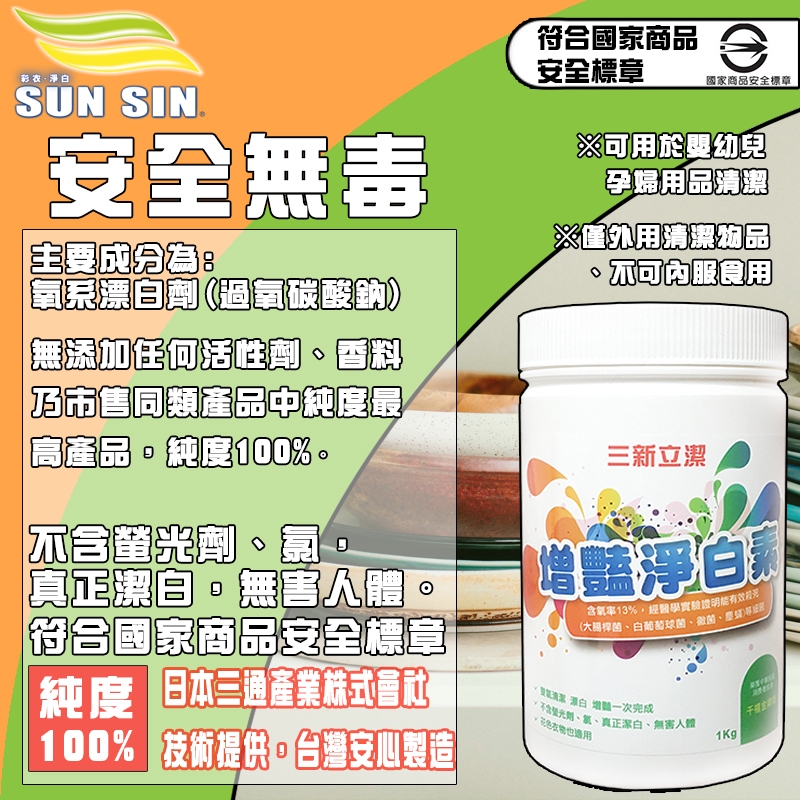 3. 雙氧殺菌、漂白增艷一次完成,不含螢光劑、氯,真正潔白,無害人體。