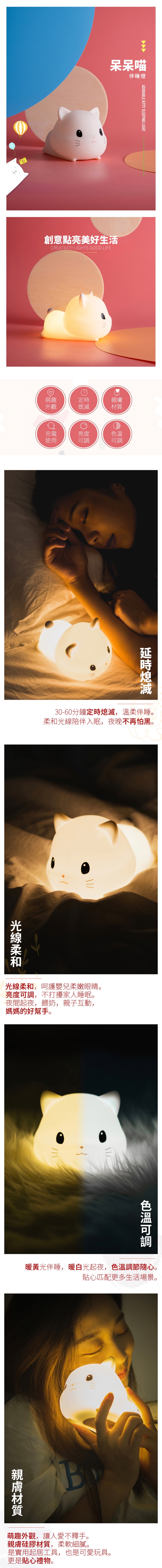 呆呆喵 矽膠燈 拍拍燈 小夜燈 宿舍臥室USB充電 伴睡 餵奶 LED呆呆貓 玩具小夜燈 擺飾 床邊露營燈 氛圍燈 禮物