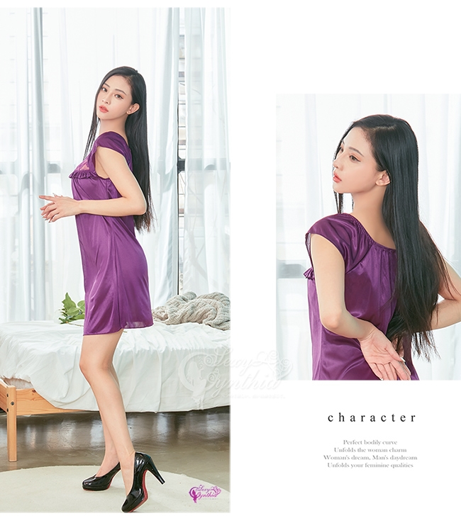 緹花蕾絲及荷葉滾邊裝飾在胸前,
