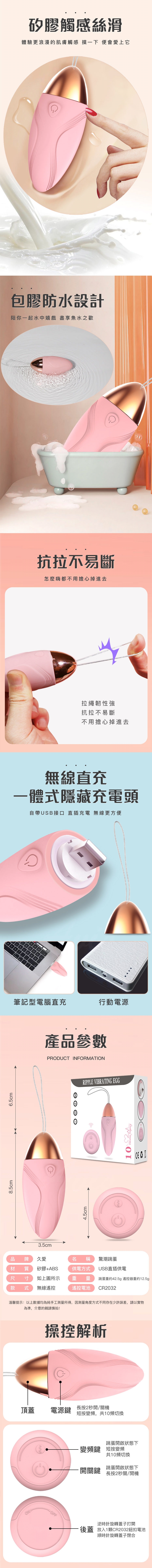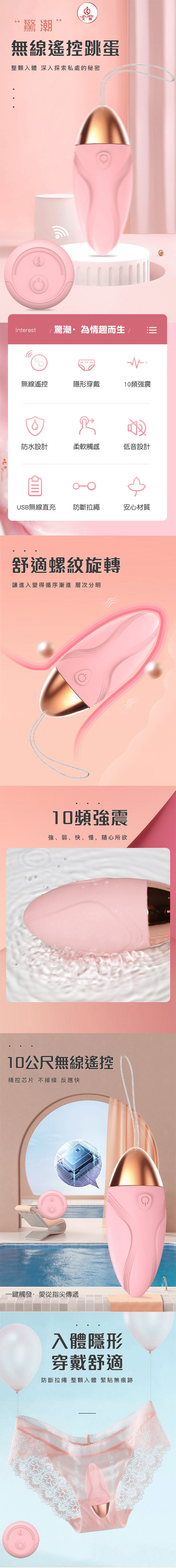 名稱:驚潮 10段變頻柔軟矽膠遙控跳蛋-粉色