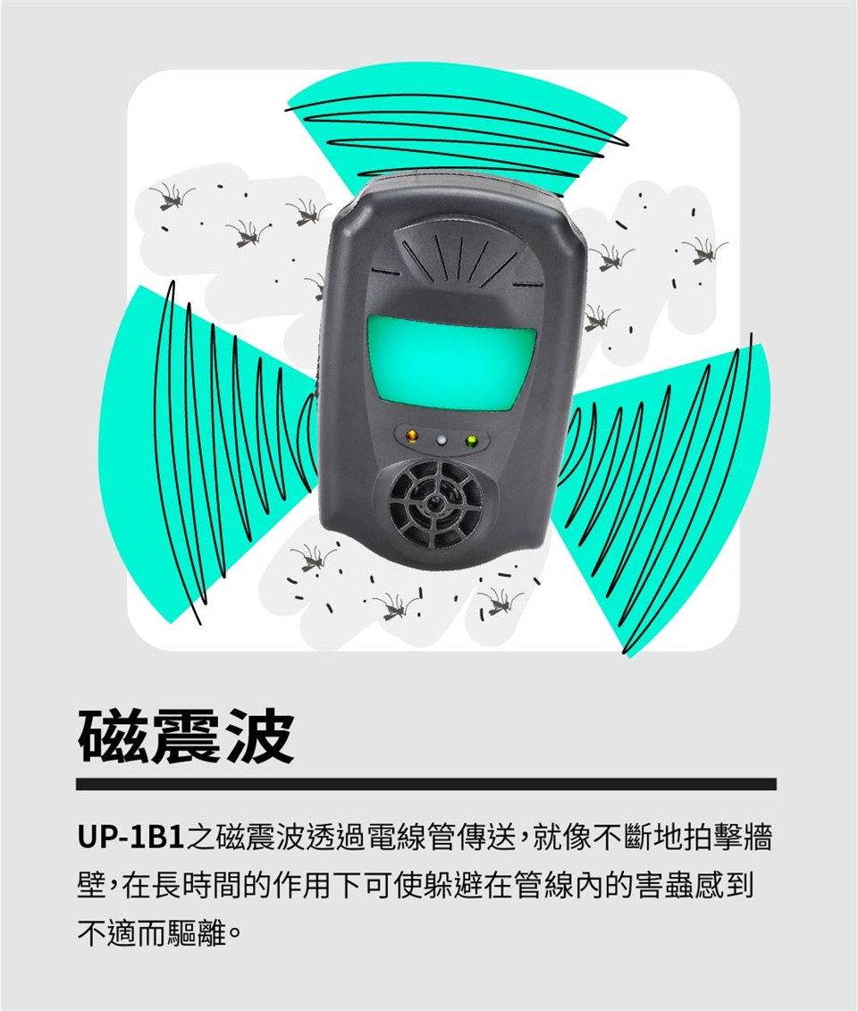 ● DigiMax★UP-1B1 特殊磁震波,通過電線傳送以驅除家中管線內部之害鼠害蟲。