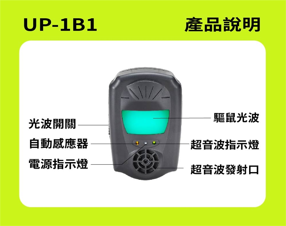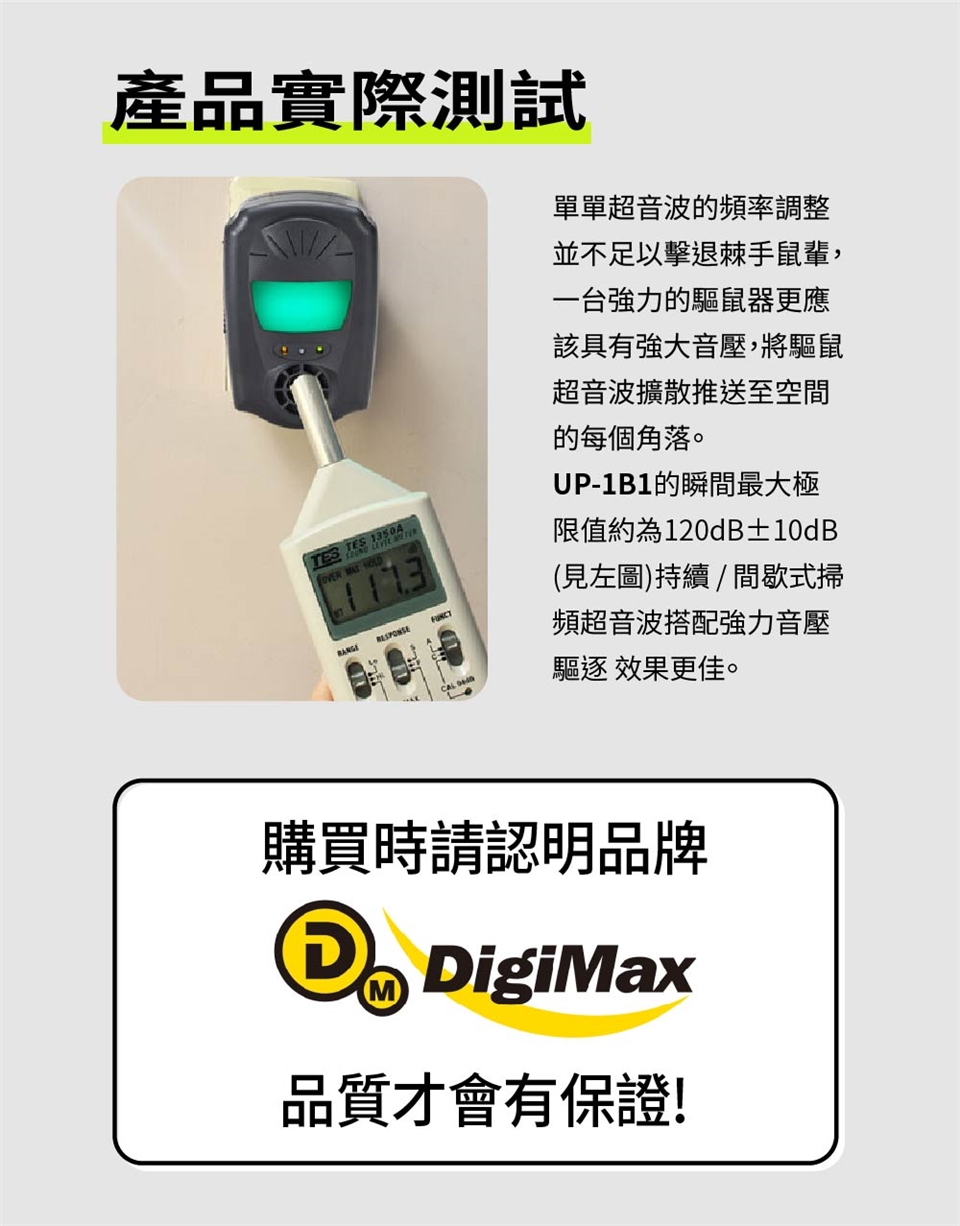 ● DigiMax★UP-1B1 "鼠來跑"雙效型超音波驅鼠蟲器