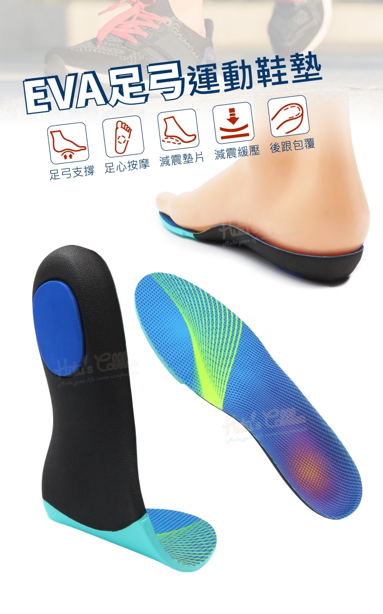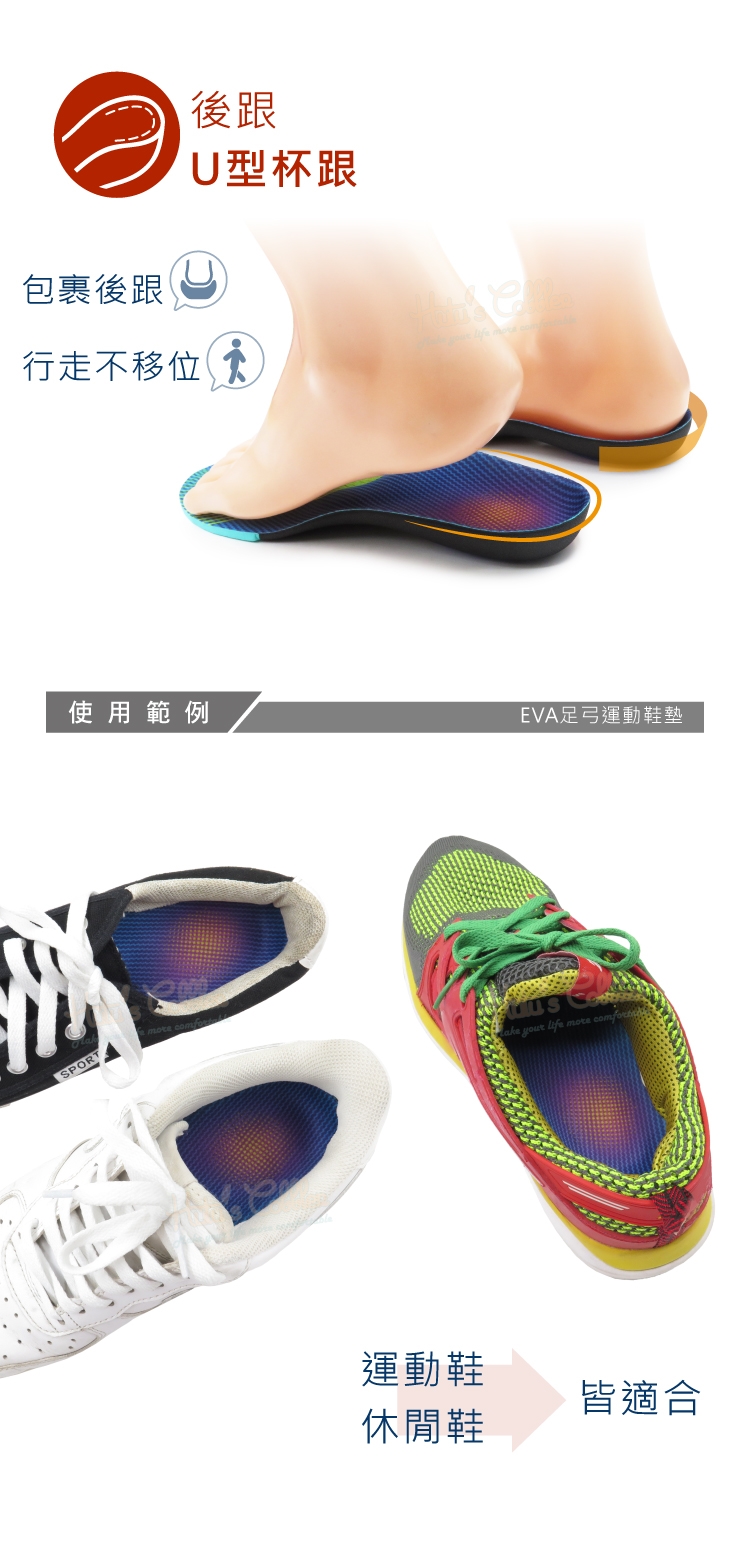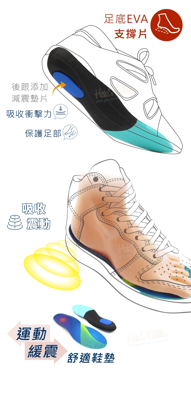足底EVA支撐片:後跟添加,減震墊片,吸收衝擊力,保護足部,吸收震動