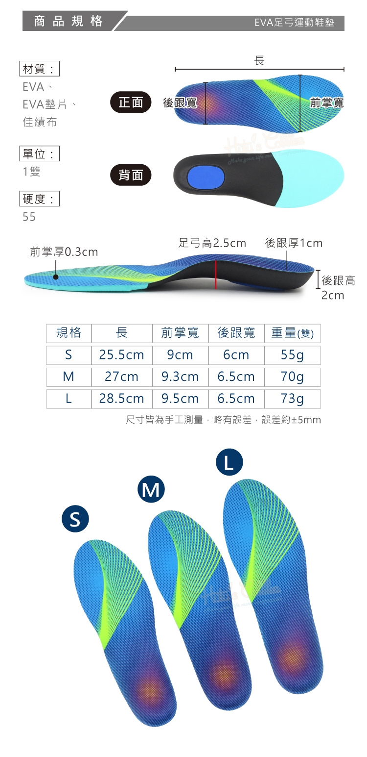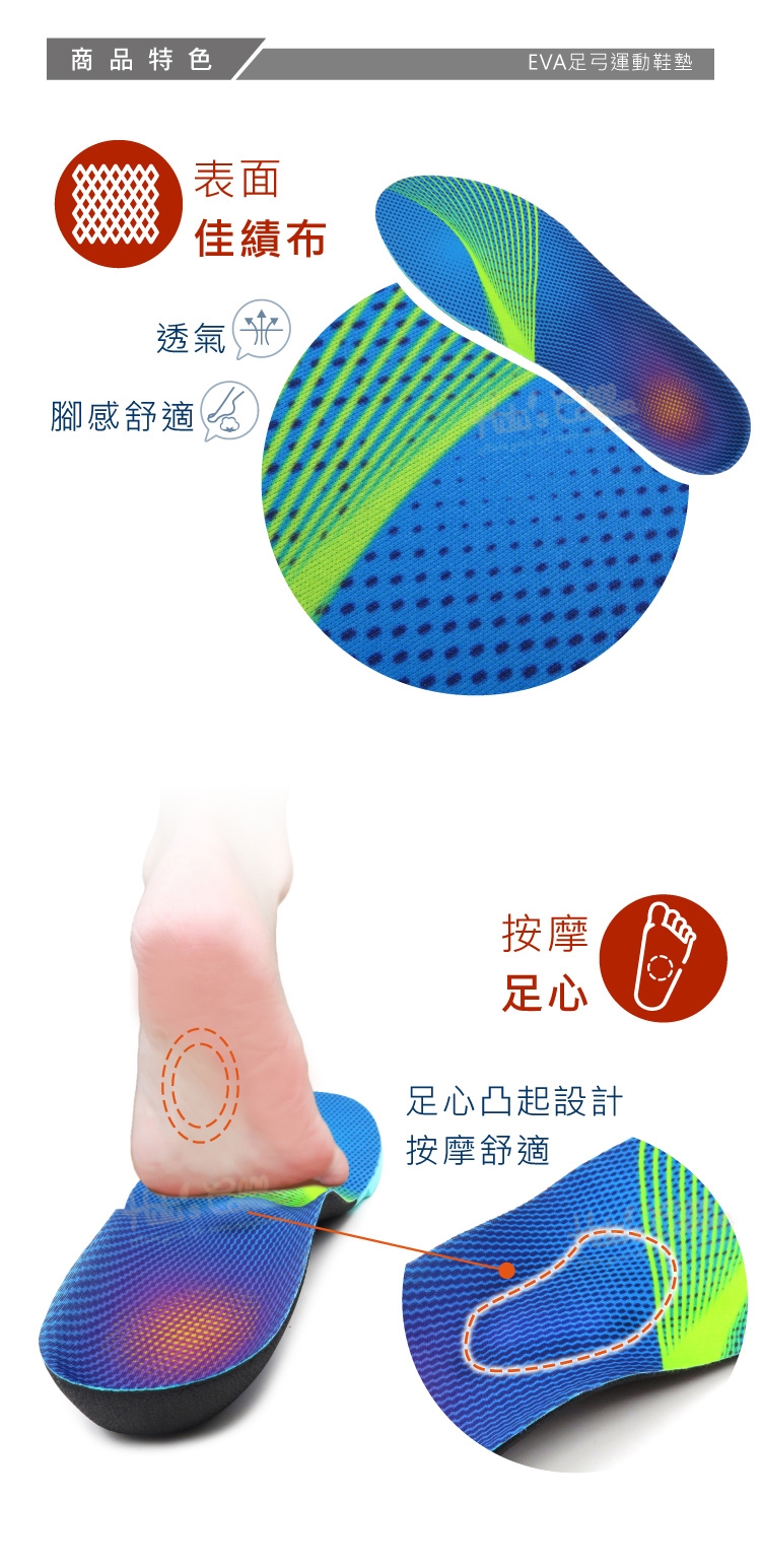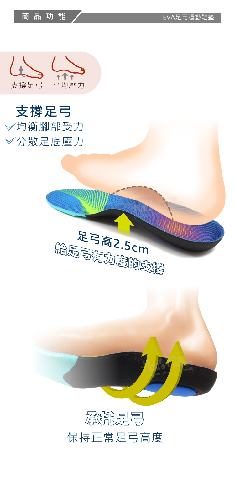 足底EVA支撐片:後跟添加,減震墊片,吸收衝擊力,保護足部,吸收震動