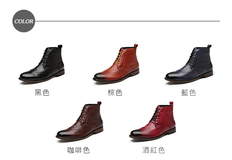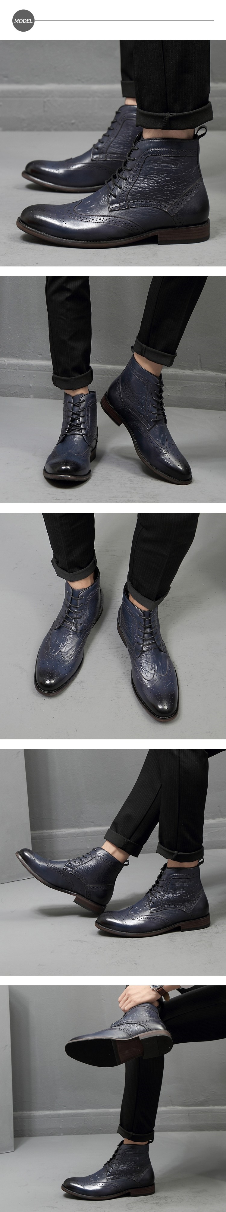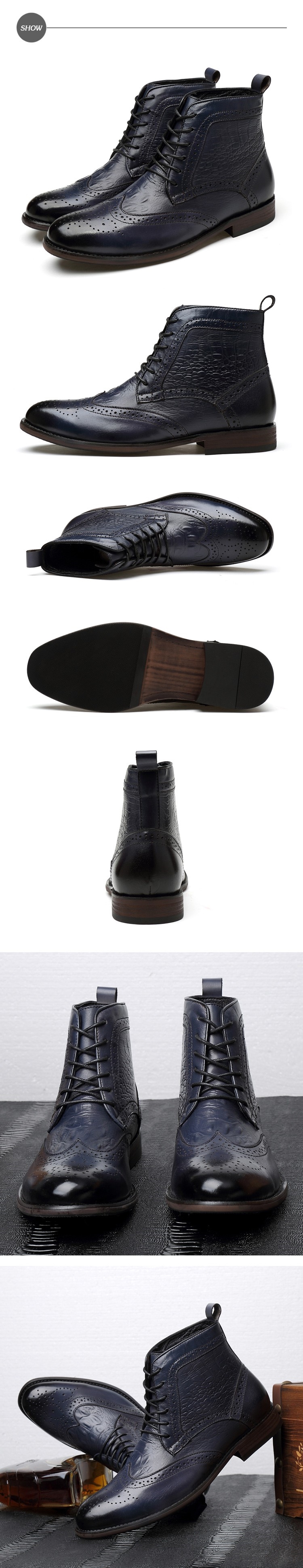 【ANSEL】真皮皮靴高筒皮靴/全真皮復古鱷魚皮紋布洛克雕花時尚高筒紳士皮靴-男鞋 藍