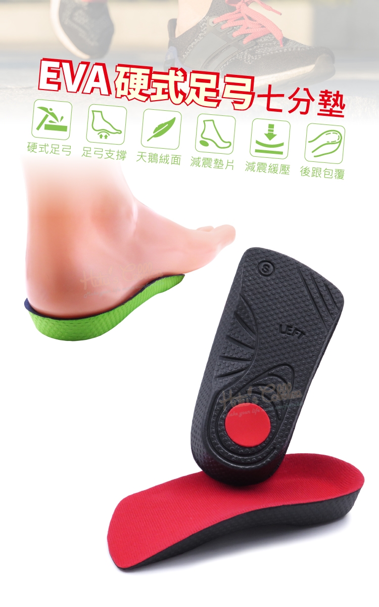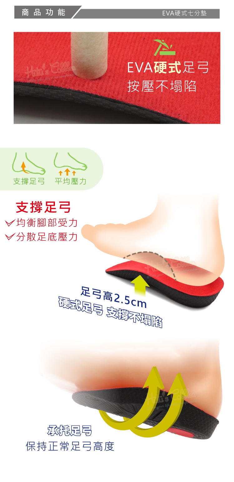足弓高2.5cm,硬式足弓,支撐不塌陷