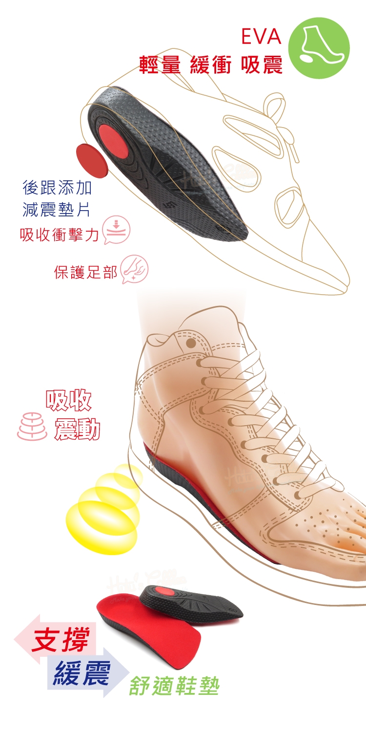 後跟添加減震墊片,吸收衝擊力,保護足部,