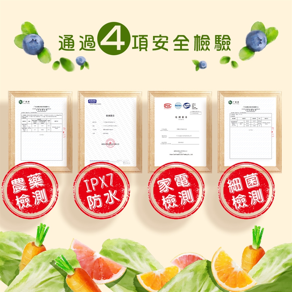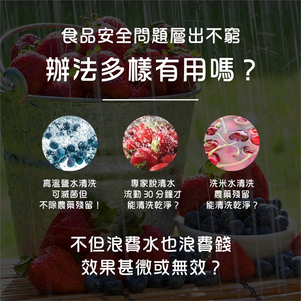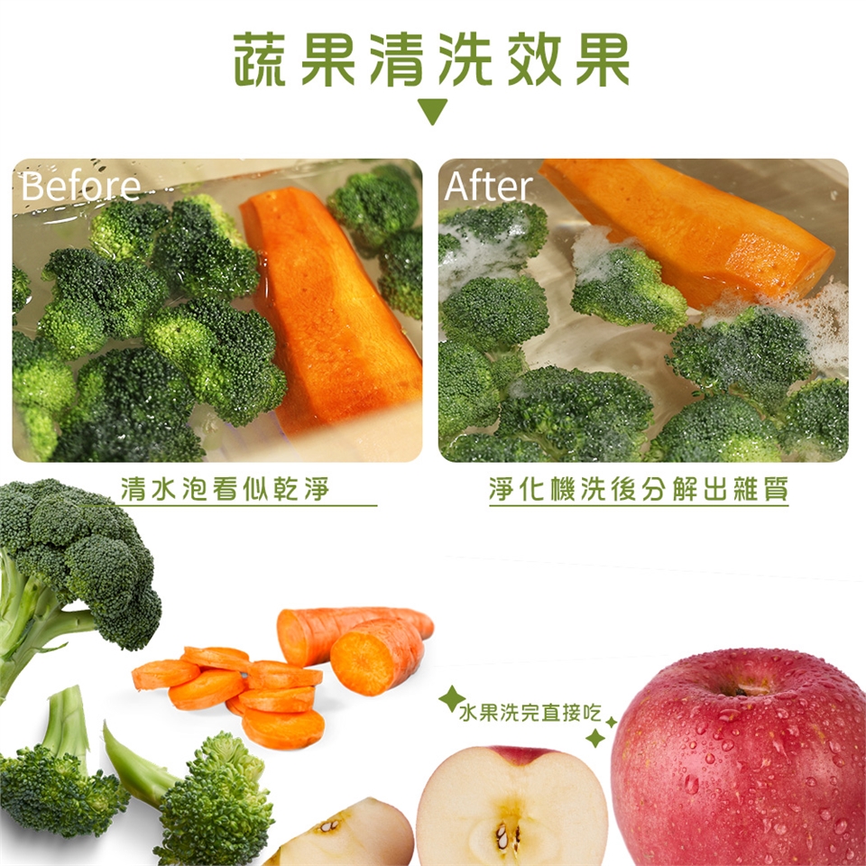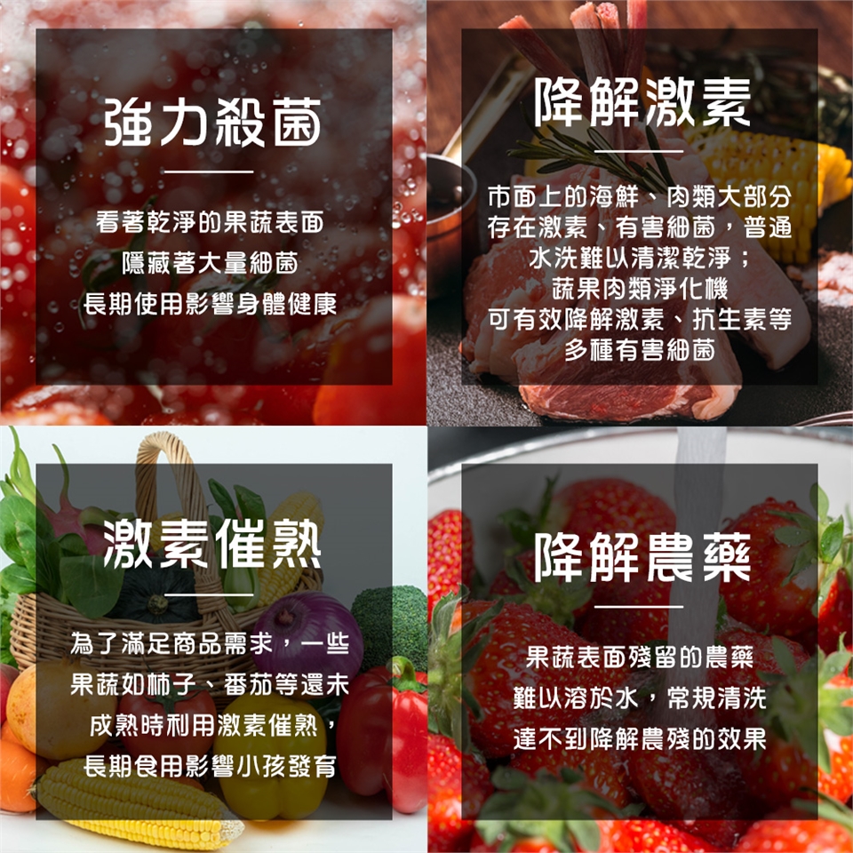 3.本商品蔬果清洗機可淨化分解蔬果肉類有害物質,如農藥、激素等。並非用於清洗泥巴髒污等表皮雜質。使用後,不可因為此原因要求退貨。