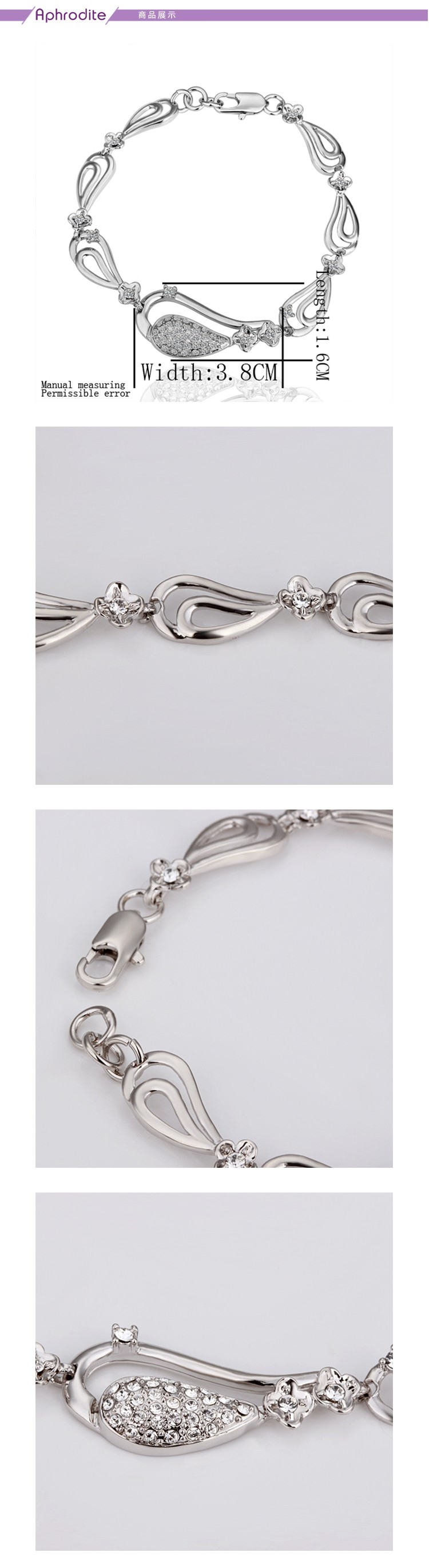 【Aphrodite 愛芙晶鑽】流線水滴縷空造型水鑽手環(白金色)