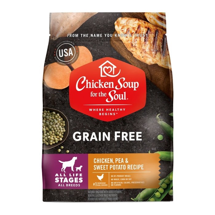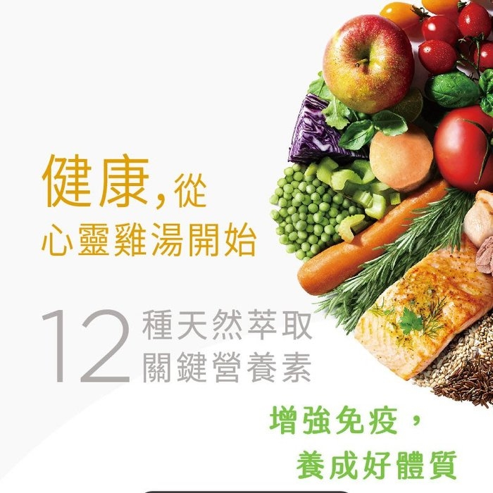 新鮮雞肉,雞肉粉,豌豆,扁豆,田豆,豌豆粉,雞肉脂肪(與綜合生育酚混合保存),亞麻籽粉,甜薯,天然香料,磷酸氫鈣,鮭魚油(與綜合生育酚混合保存),天然鹽,碳酸鈣,氯化膽鹼,菊苣根,覆盆子,西紅柿,藍莓,牛磺酸,混合生育酚(天然防腐劑),檸檬酸(天然防腐劑),蛋白鋅,氧化鋅,維生素E,絲蘭萃取物,硫酸亞鐵,氧化錳,錳蛋白,硫酸銅,維生素A,D-泛酸鈣,菸鹼酸,亞硒酸鈉,銅蛋白酶,核黃素,碘酸鈣,嗜酸乳桿菌發酵物,酪乳桿菌發酵物,植物乳桿菌發酵物,屎腸球菌發酵物,維生素B1,維生素B6,維生素D3,碳酸鈷,葉酸,生物素,維生素B12,迷迭香萃取物