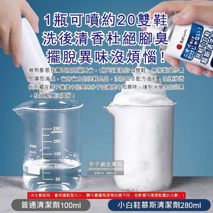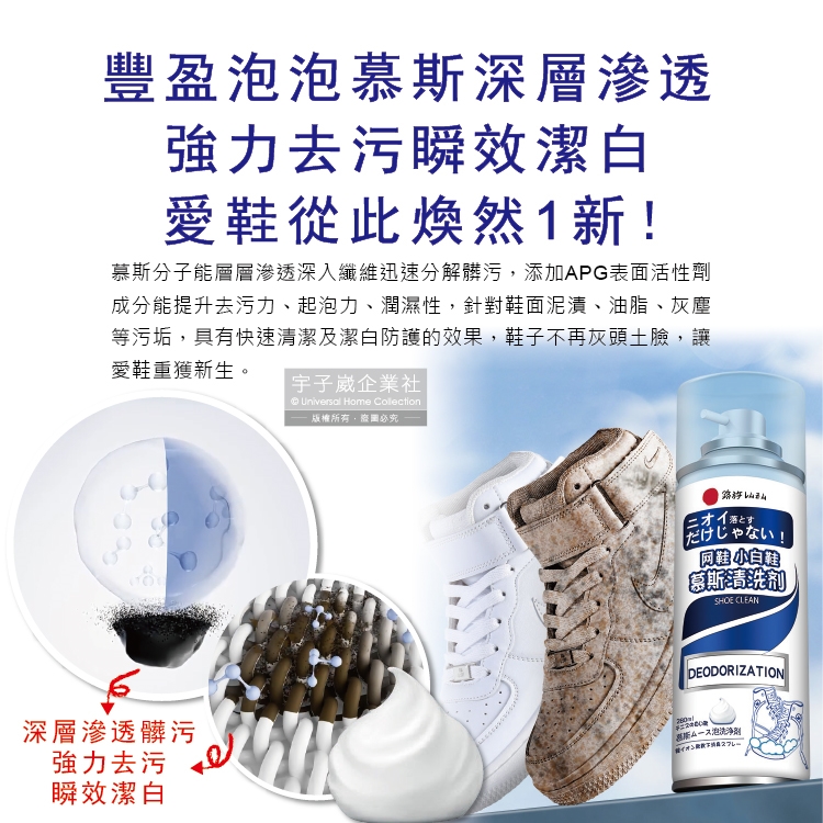 ●品名:乾濕兩用去污瞬白除臭芳香小白鞋泡泡慕斯清潔劑