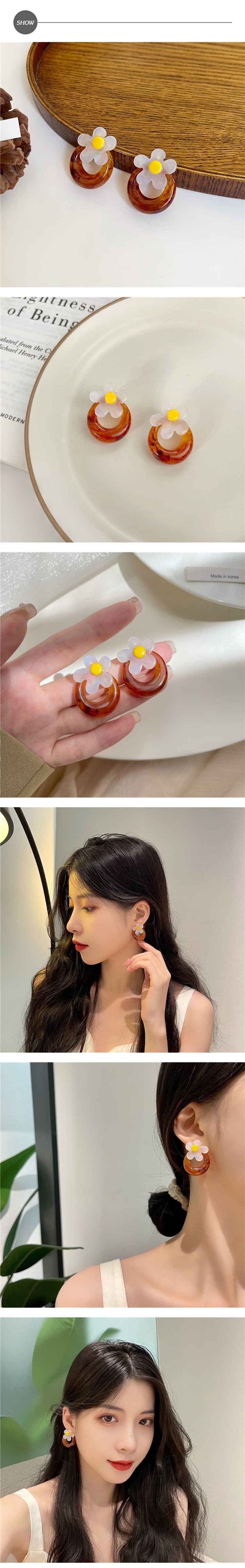【INES】韓國設計925銀針醋酸花朵法式復古造型耳環