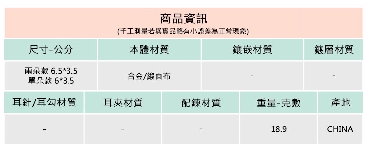 ◆合金飾品一經使用可能隨時間失去光澤或褪色,此為正常物理現象,妥善使用保存可延長飾品壽命。