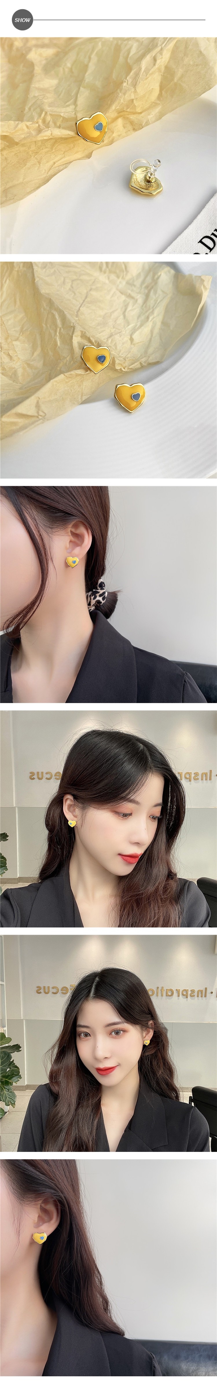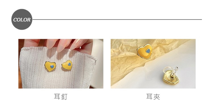 【MISA】韓國設計925銀針復古愛心撞色滴釉造型耳環