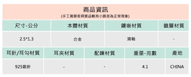 ◆耳環屬個人衛生用品,一經開封恕不退換。