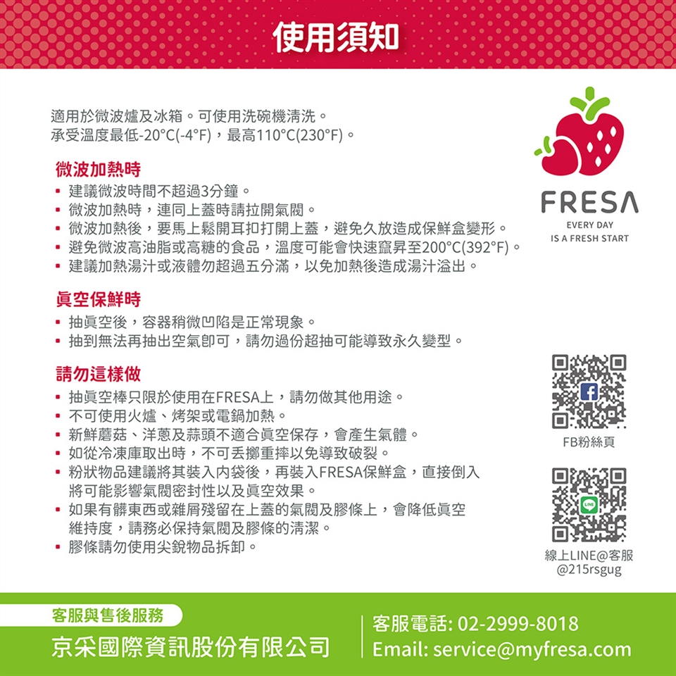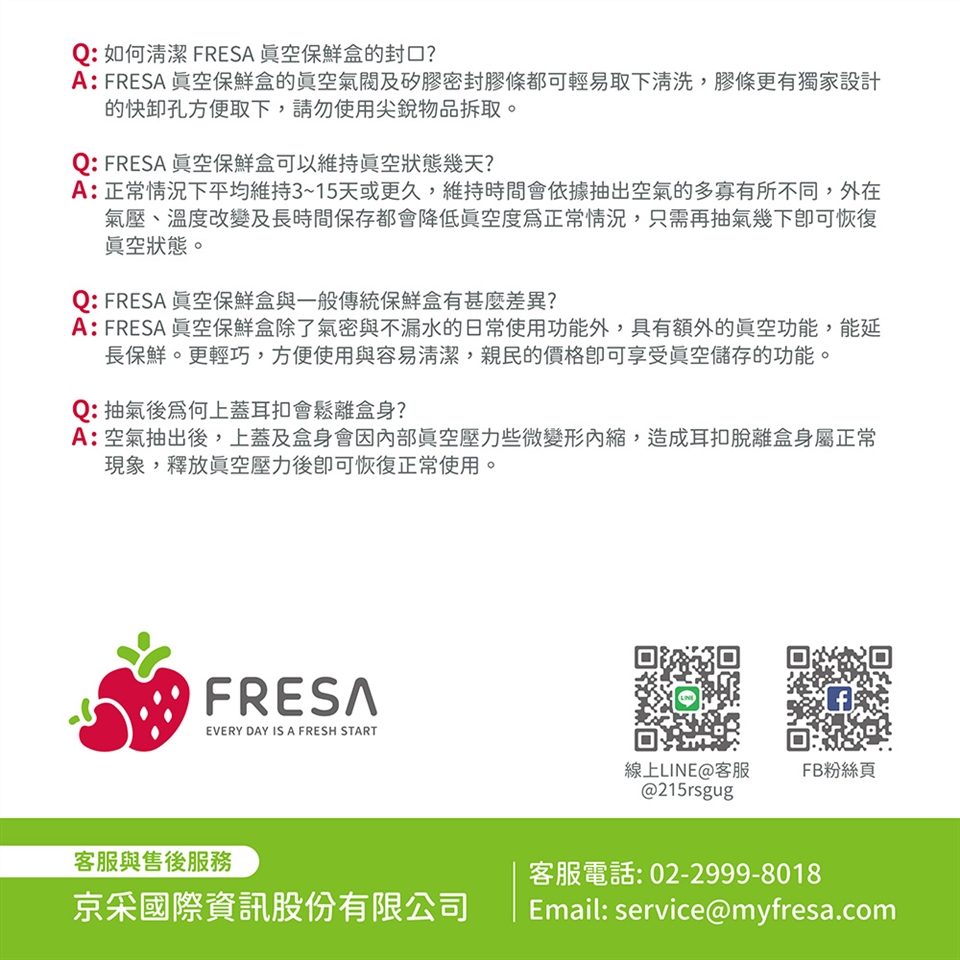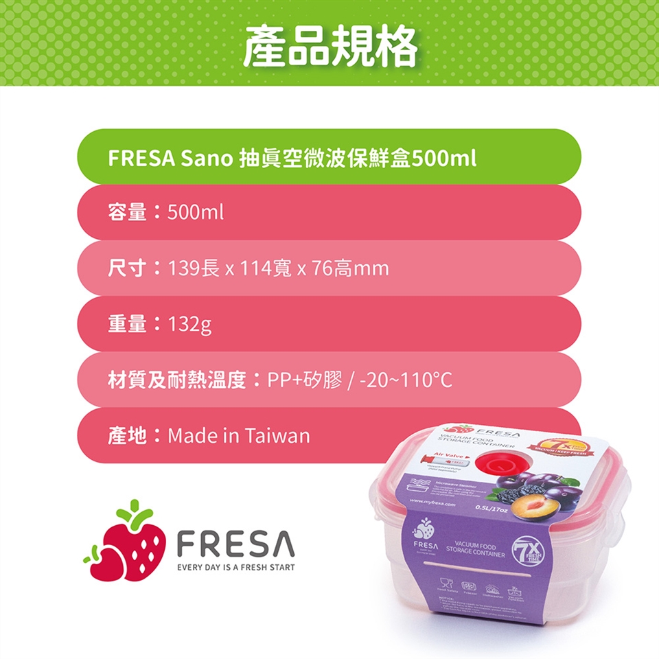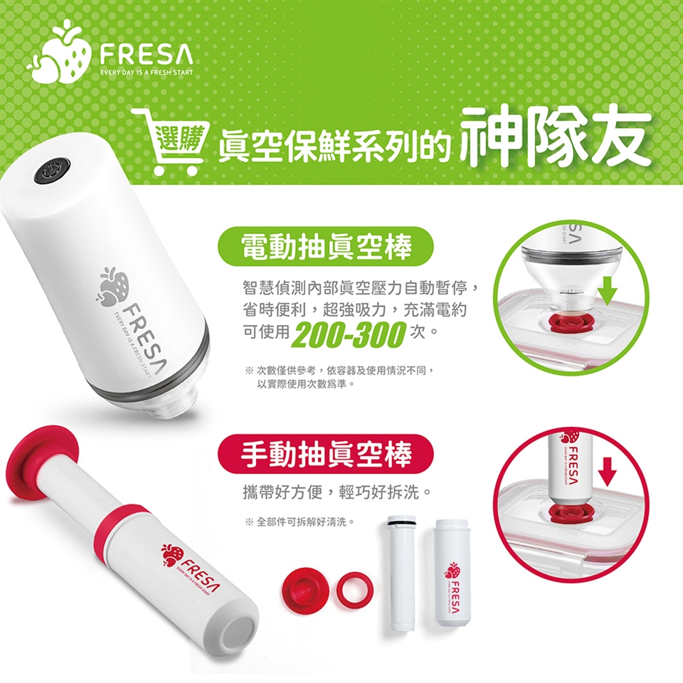 *本賣場僅銷售FRESA保鮮盒500ml,抽真空棒請另外購買搭配使用。