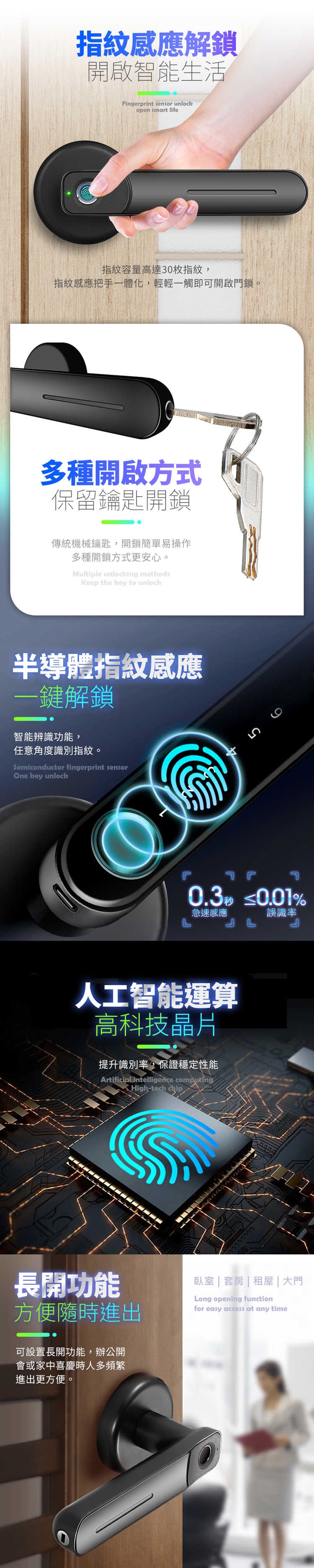 開鎖方式:指紋/鑰匙/密碼解鎖